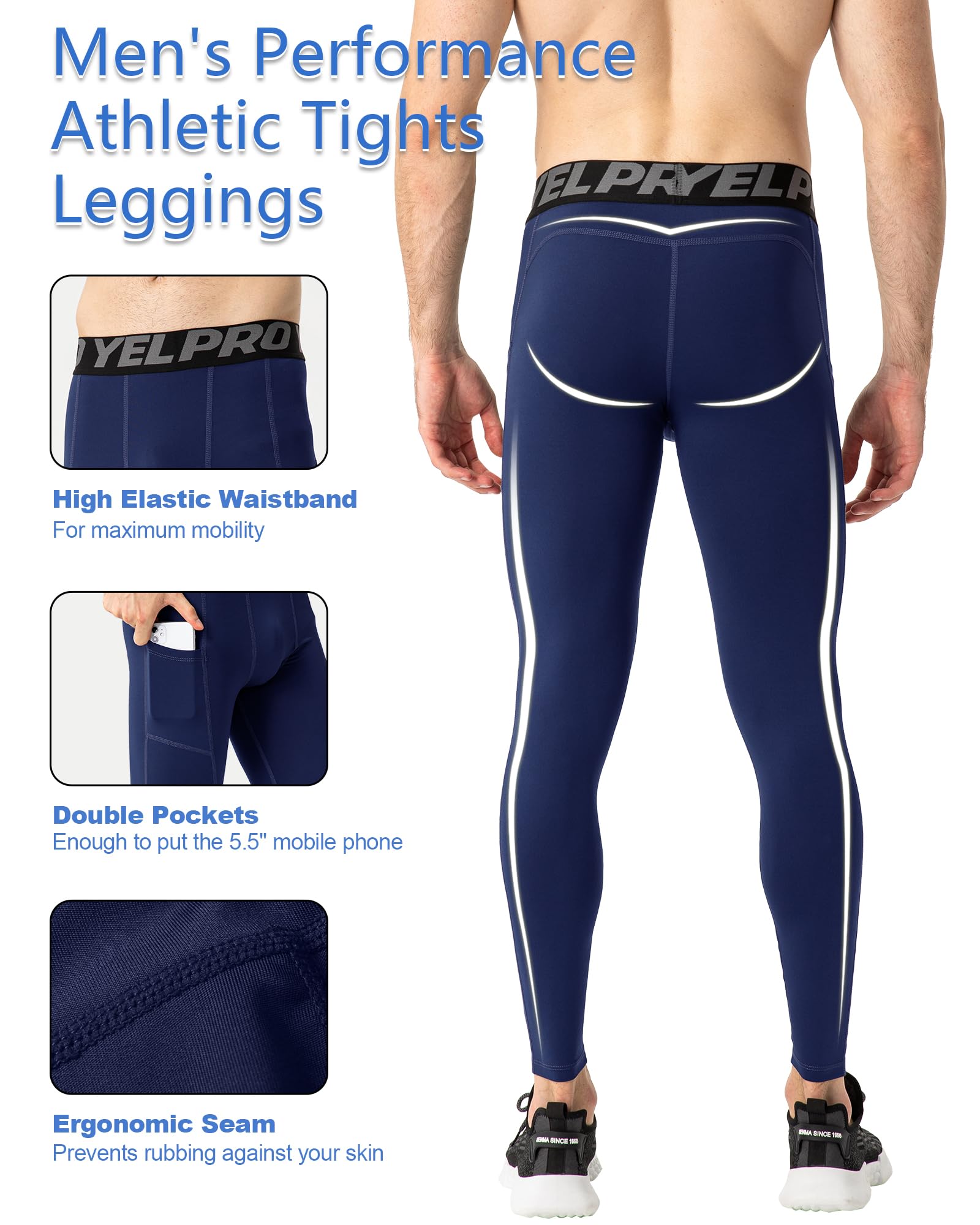 ERGONOMIC SUTURE DESIGN: Ergonomic design to make you fell optimal in various activities. Won't deform and fade compression tights, as mild as the second skin. Men's compression baselayer legging with pockets are deep and roomy enough to hold your phone and wallet. Wide waistband stays in place and won't roll down, for optimal coverage