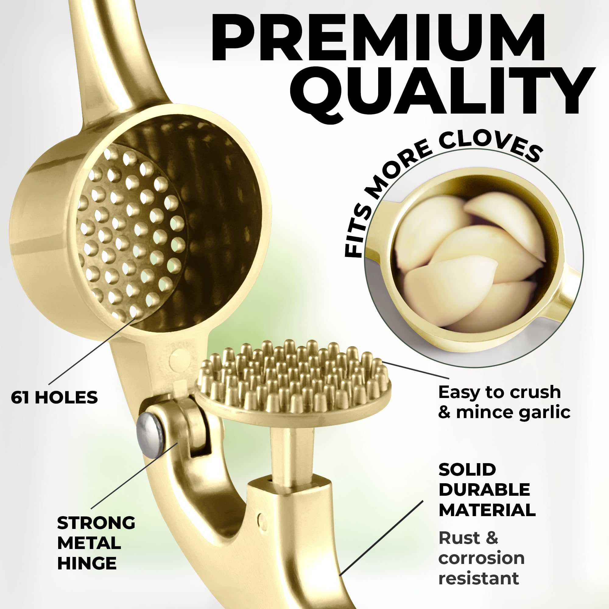 SIMPLE TO USE & BUILT TO LAST: Our premium quality garlic press is constructed from food-grade, rust-resistant materials meant to be among your favorite kitchen gadgets for years to come. This garlic and ginger mincer is designed with built-in studs to extract more paste within seconds. It is great for both professional and home kitchens.