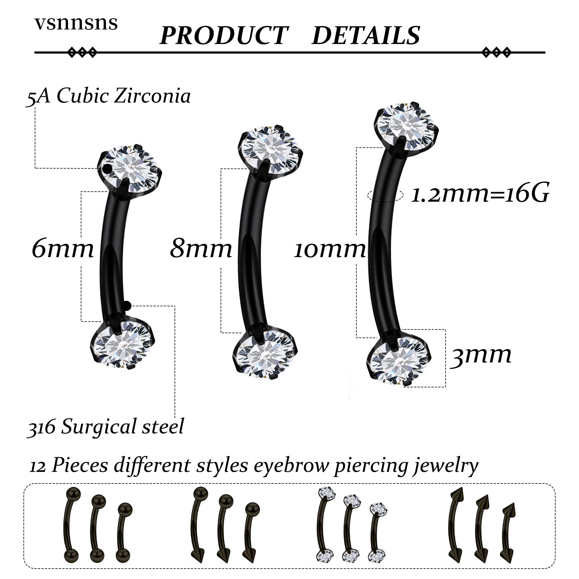 [SUITABLE FOR USE]: These Eyebrow Piercing Jewelry Can Be Used For Eyebrow Rings, Eyebrow Jewelry, Eyebrow Piercing, Rook Piercing Jewelry, Daith Piercing Jewelry, Vertical Labret Lip Jewelry, Small Belly Button Ring, Rook Earrings, Daith Earrings.