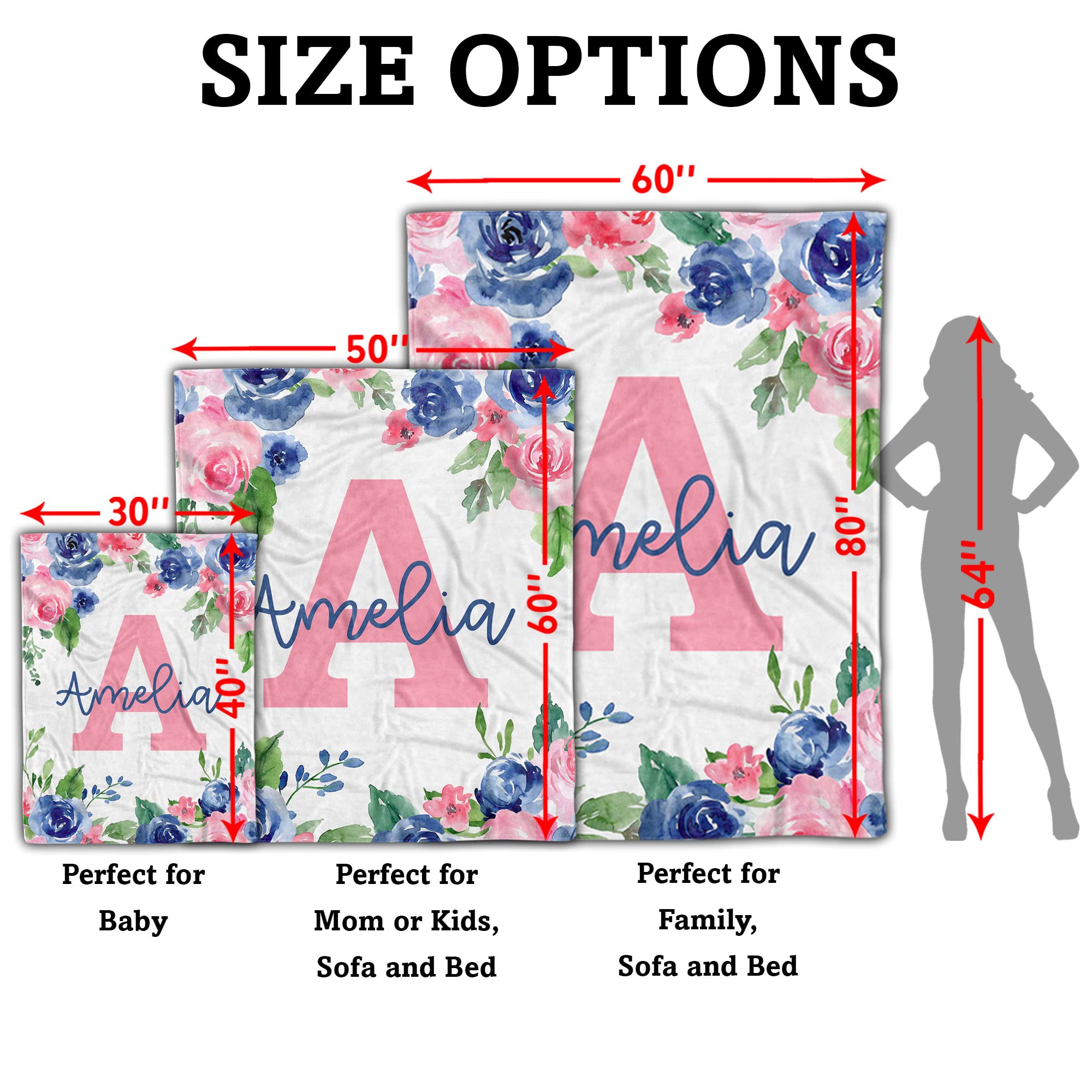 Material: Our personalized fleece blanket is made of 100% soft and silky polyester. Multiple sizes: 30’’x40’’, 50’’x60’’, 60’’x80’’ Color: Actual color may be slightly different from the image due to different monitor and light effects. Garment Care: Machine wash or hand wash. Tumble dry on low heat. Avoid direct heat. Do not use bleach. How to order: - Step 1: Click Customize Now button. - Step 2: Enter the name you would like on your blanket (you can also add the optional matching bib and baby onesie). - Step 3: Add to Cart, Place Order, and let us do the rest for you. NOTE: Please allow 0.5-2 cm differences due to manual measurement If the items you receive are damaged or wrong, please contact us with the attached pictures about the problem, we will provide you with a satisfactory solution within 24 hours.