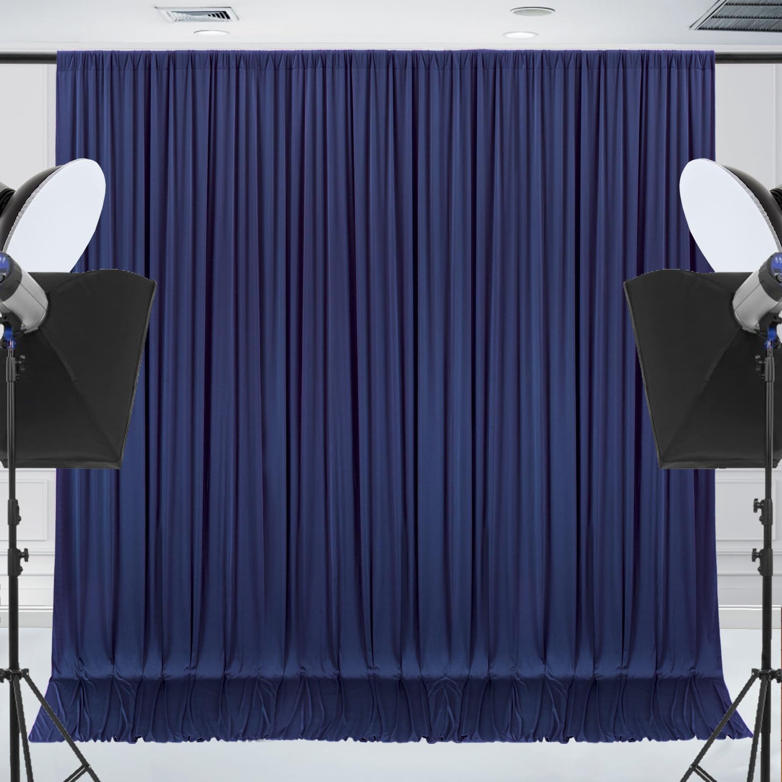 6 Panels Backdrop Curtains Package —— Your package includes 6 panels of soft navy blue backdrop curtains, each measuring 5FT in width and 10FT in height. Together, they create a perfect 30FT x 10FT backdrop, providing ample room for various occasions. Please note: Not including the background stand