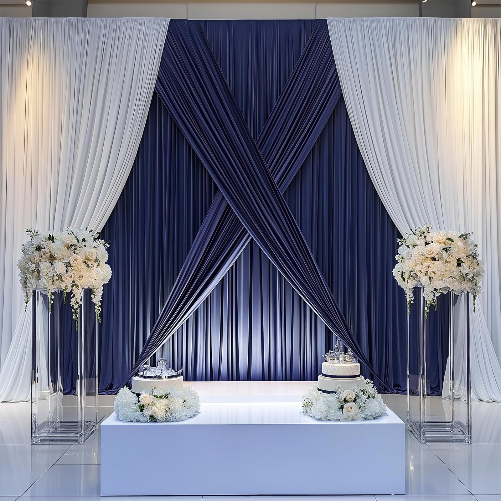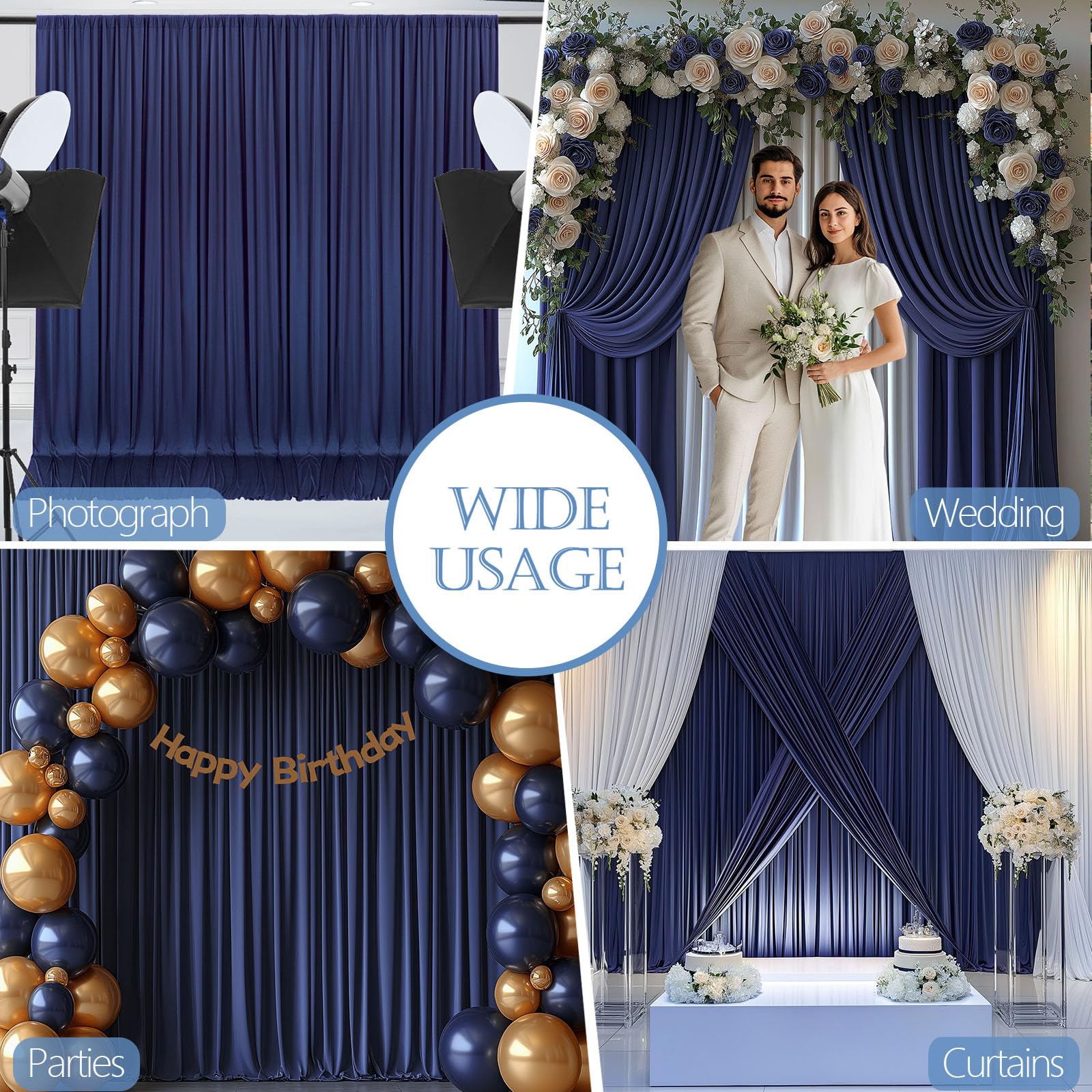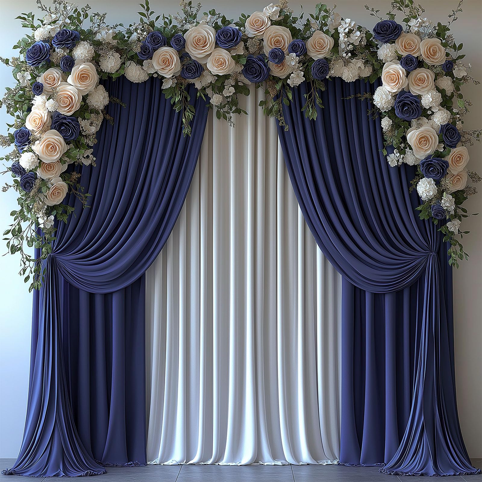 High-Quality Wrinkle-Free Fabric —— Crafted from premium 100% high-quality polyester fabric, this dark blue wedding backdrop offers a silky smooth texture, and an irresistibly soft touch akin to milk. The backdrop Curtains for wedding droops naturally and the texture is very good, will make your wedding more elegant