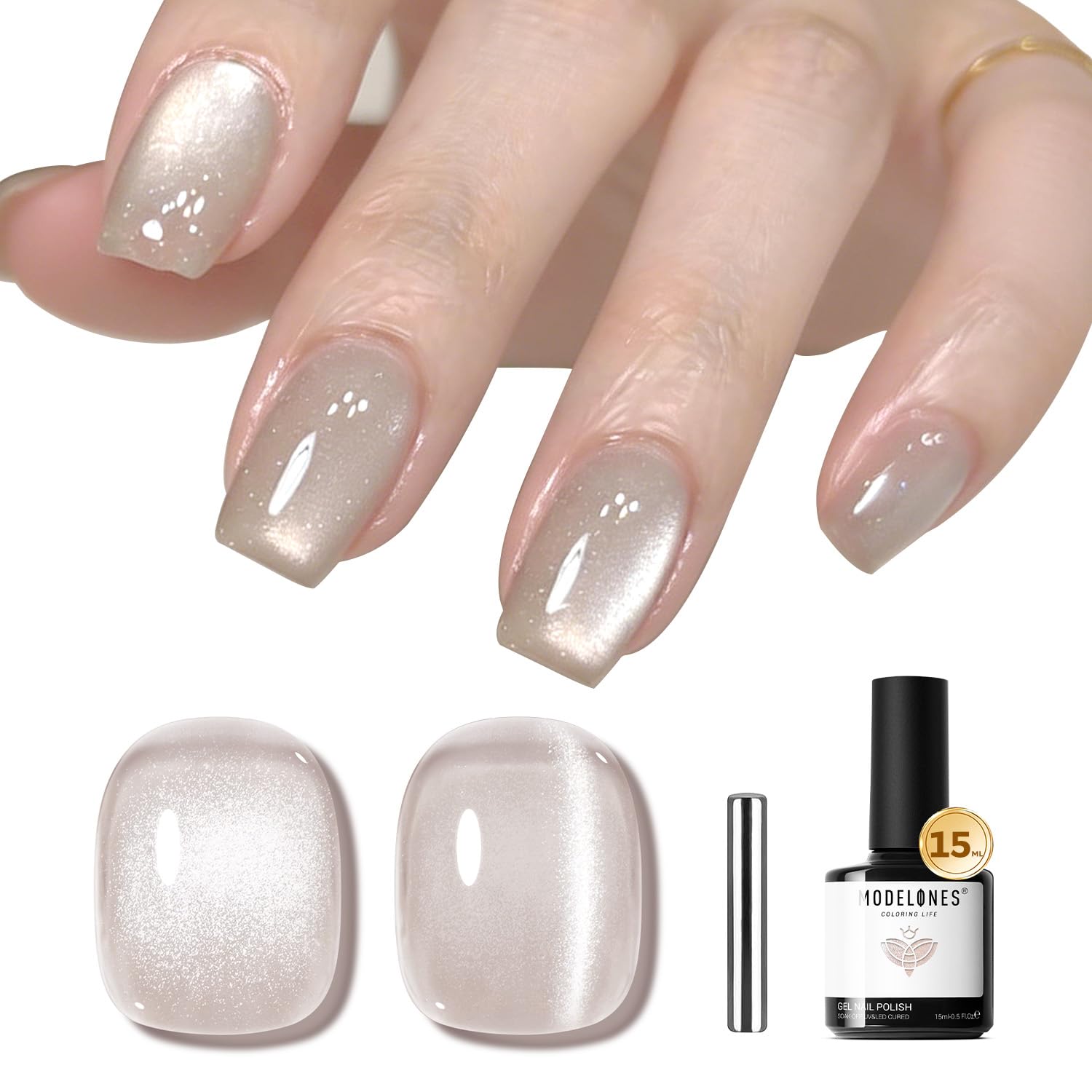 Dynamic Shimmer Cat Eye Effect: Hold the magnet 3-5mm above the surface for 5-10 s to achieve your desired effect! Each Modelones 9D cat eye gel polish is expertly mixed with metallic magnetic glitter powders for a shiny finish. Different angles create different visual effects.