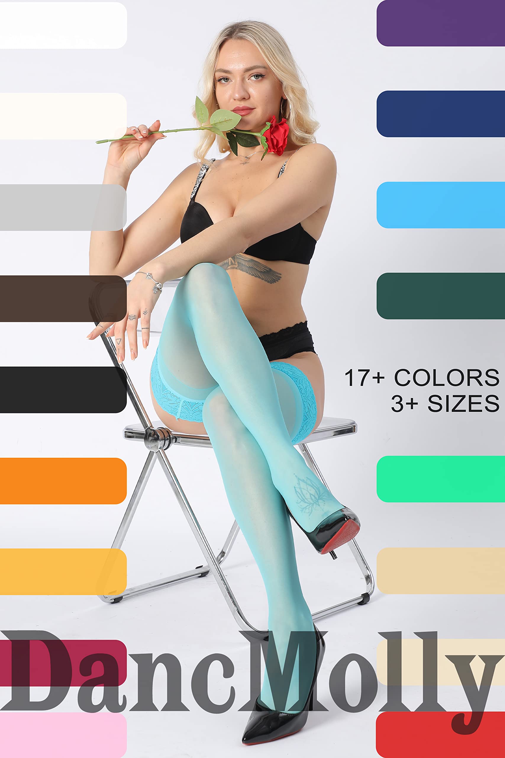 EVERY COLOR OF THE RAINBOW! With DancMolly's radiance, Stay warm and effortlessly stylish from thigh to toe. When you combine the attraction of a faultless finish with a lively color splash, Radiating otherworldly elegance from top to toe. For the lady who is stylish and fiercely self-assured no matter the weather, these cozy-chic thigh highs are perfect. 17+ vibrant colors to choose from with DancMolly thigh high stockings.