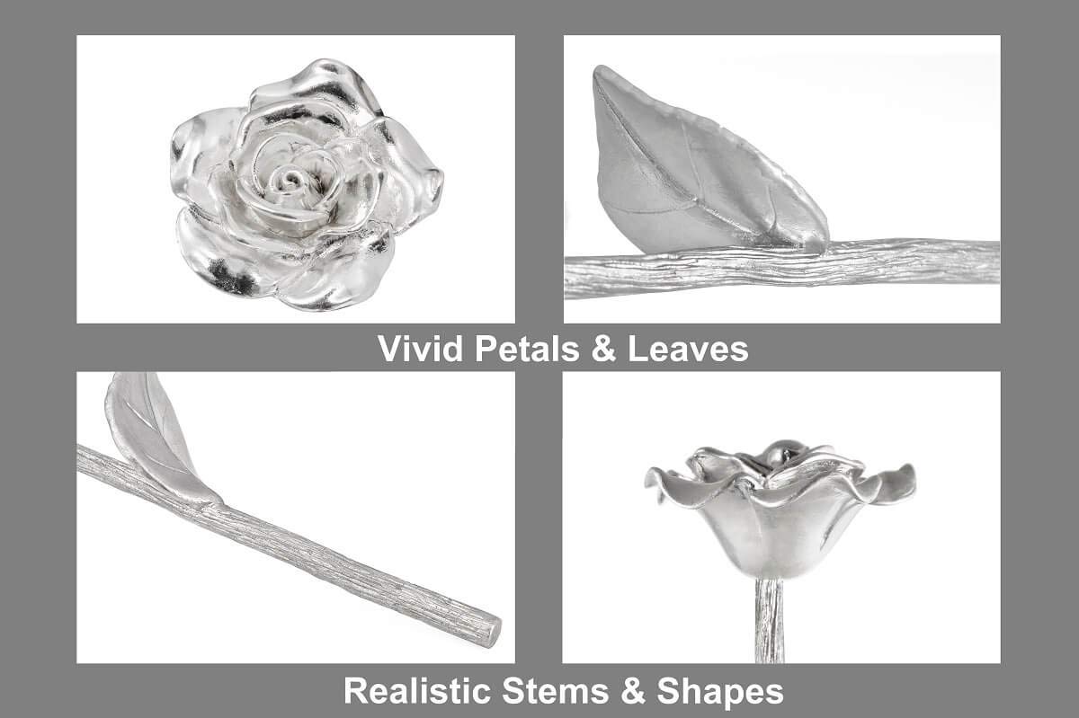 Handcrafted Artwork: Each of our beautiful tin rose anniversary gift is hand-cast by experienced craftsmen to bring you the most quality artwork. Natural in appearance with vivid petals, leaves and stems.