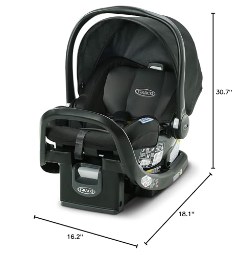 Graco SnugRide SnugFit Infant Car Seat features an Anti-Rebound Bar, which provides an additional layer of rear-facing safety by limiting rotation of the seat and your child in the event of an impact. SnugRide performance helps to protect rear-facing infants from 4-30 lb and up to 32". From the makers of SnugRide, the SnugFit line of infant car seats pairs safety technologies with easy installation and comfort features for your little one. The headrest and harness can be adjusted together while your child is in the seat with the front-adjust No-Rethread Simply Safe Adjust Harness System. The 4-position adjustable base and an easy-to-read pendulum level indicator help with proper installation. Infant head and body supports offer a comfortable fit. The Silent Shade canopy adjusts quietly without disturbing baby. Create your own travel system or use in multiple cars: The SnugRide SnugFit attaches with a one-step secure connection to most Graco strollers and infant car seat bases. The car seat is Graco ProtectPlus Engineered to help protect in frontal, side, rear, and rollover crashes.
