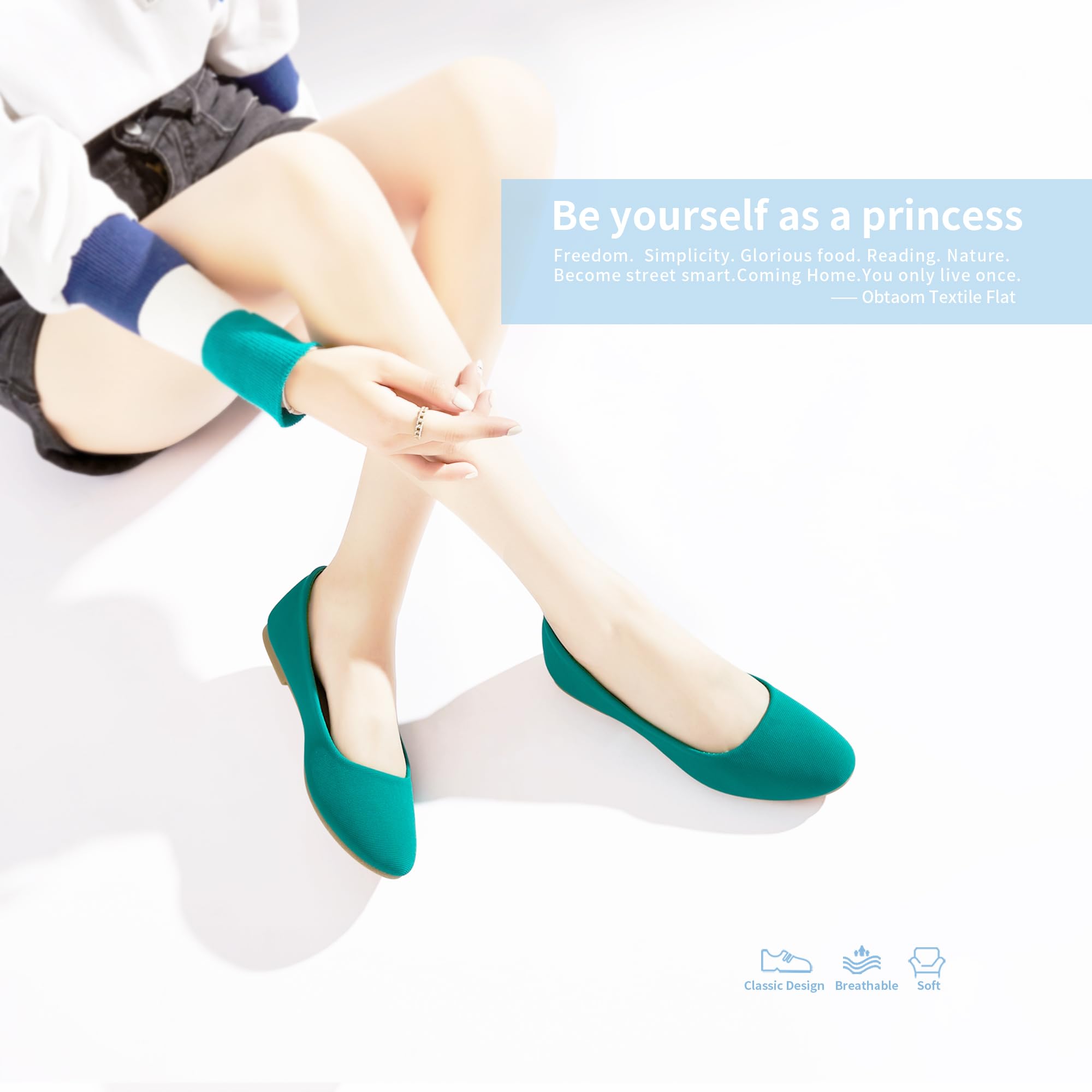 Textile upper of Womens Textile Round Toe Ballet Flats is breathe freelyοΌsoft and comfortable.