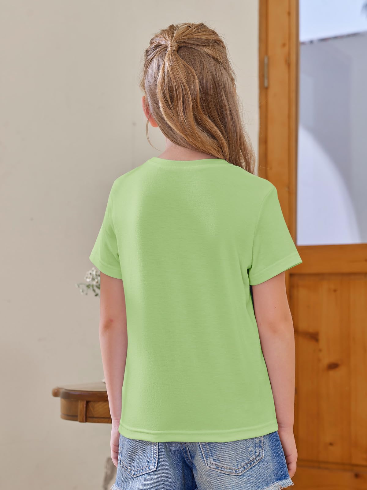 Match: These girls short sleeve T-shirts can be easily paired with shorts, skirts, jeans, overalls, sweatpants, flats and sneakers. Or pair it with a cardigan or jacket in spring and fall. A classic and basic tops that is cute and fashionable and will never go out of style