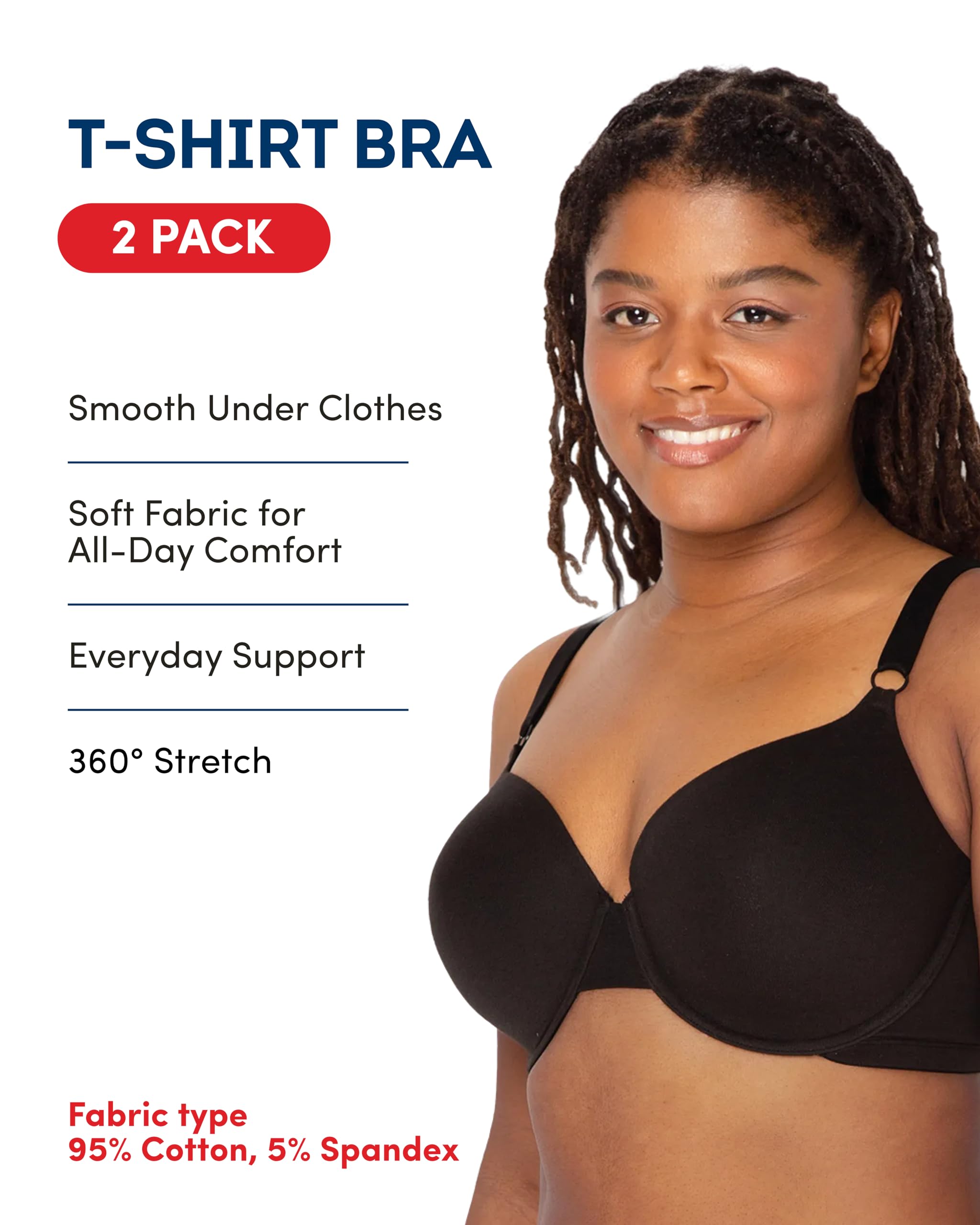 Description The Fruit of the Loom women's 3-pack T-shirt bra is your new favorite no show bra. The smooth, lightly lined cups are invisible under shirts, but one thing you won't be able to hide is your confidence. This full coverage bra is designed with thick adjustable straps and underwire for all-day comfort and support. Fruit of the Loom has been one of America's most trusted brands for over 160 years. We promise to deliver quality undergarments at an affordable price, always. Start everyday happy with Fruit of the Loom.