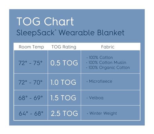 ALL-SEASON TOG RATING: With a midweight 1.5 TOG rating, this infant sleep sack is perfect for most nursery temperatures. Layer over cotton pajamas or bodysuits to keep baby comfortable through every season.