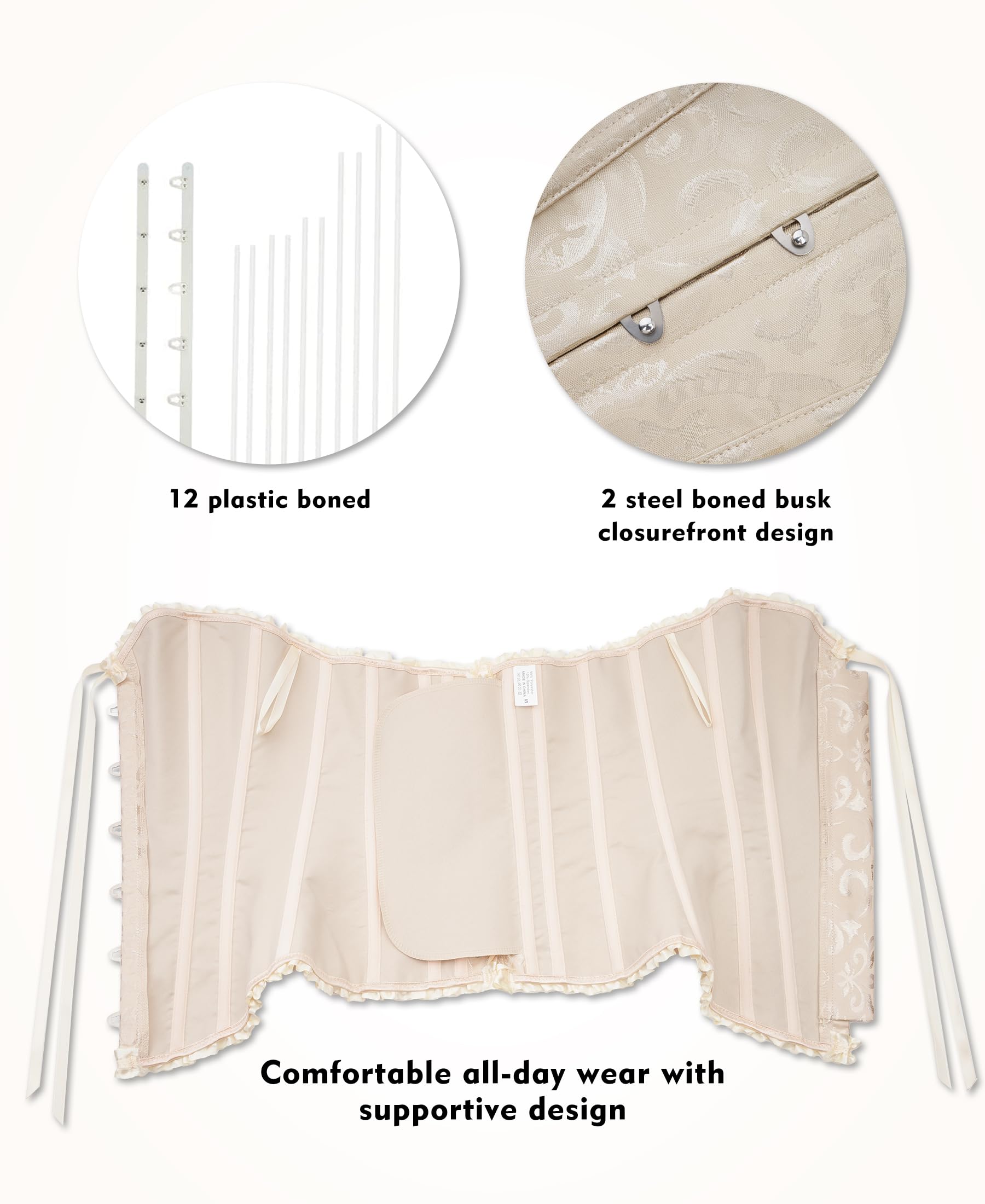 COMFORTABLE TO WEAR ALL DAY: Corsets are made with soft fabric that will mold around your body, making them comfortable for all-day wear! Our corsets for women are designed to be lightweight, breathable, and cozy so you can move in them freely. This bustier top supportive 12 plastic bone structure will help hold your spine upright so you look better and stay more energized. A waist corset will make you feel comfortable and confident in your body.