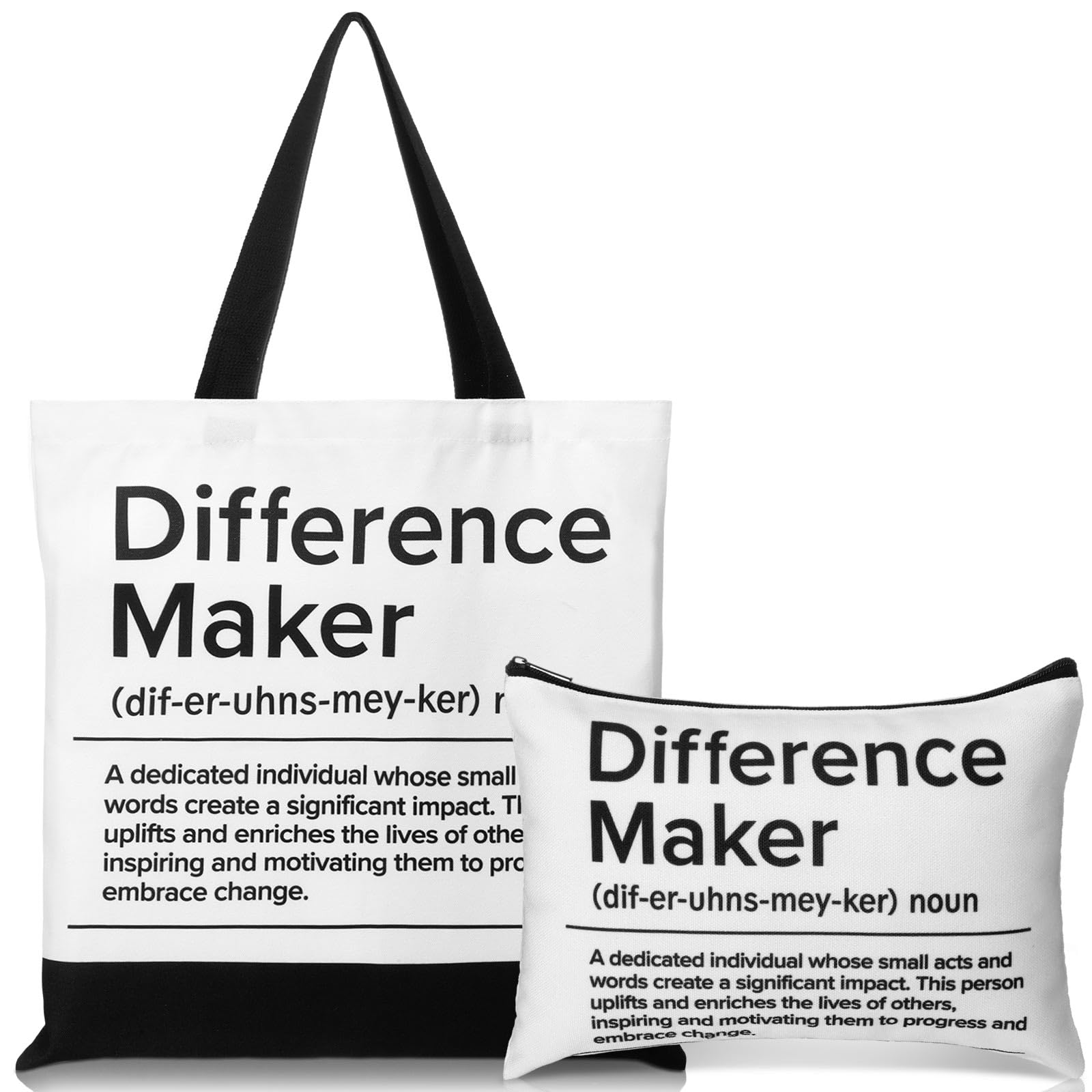 Quality Material: our difference maker canvas tote and pouch are crafted from canvas; Upon receiving the package, if there are wrinkles, simply iron gently before use; The printing is clear and vivid, with clear printing, sturdy and strong, washable, not easy to fade or tear