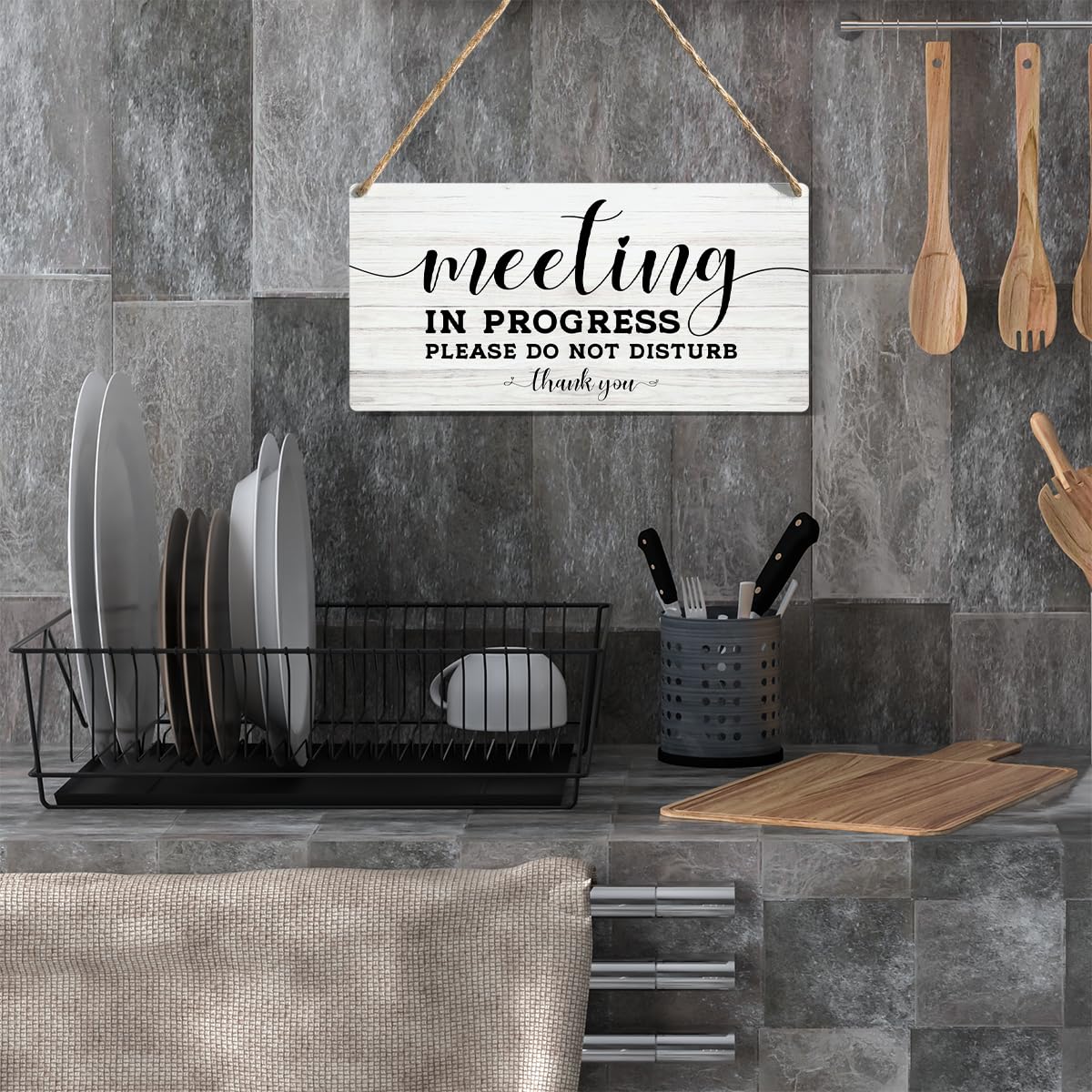 Easy Hanging: Installation is extremely easy. There are two reserved holes and a free rope of each sign that easy to be hung on any wall surface, etc. It can also be put atop a table, desk or counter to spruce it up