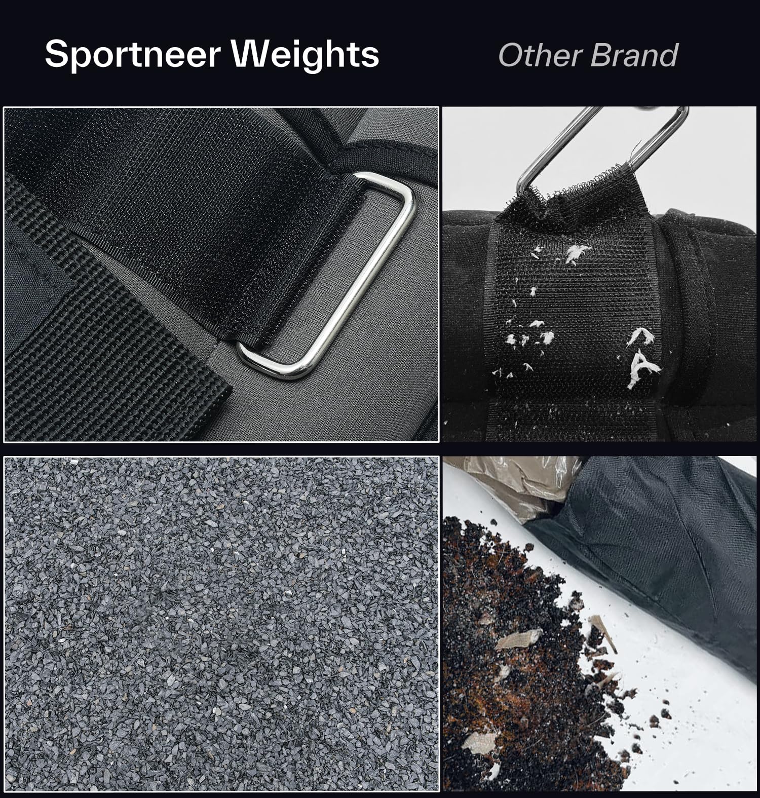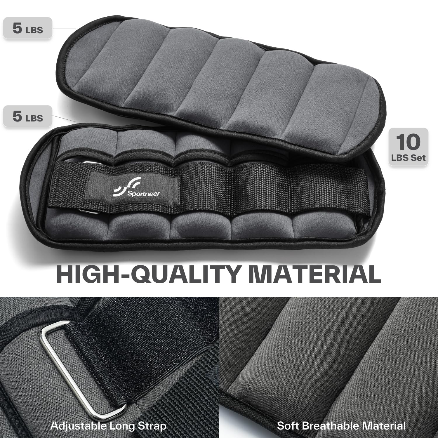 QUALITY & COMFORT: The Sportneer ankle weights were made of neoprene exterior, reinforced stitching, sturdy outer trim and moisture absorbing material inside, soft, breathable and comfortable, you could feel its softness when hold in your hands.