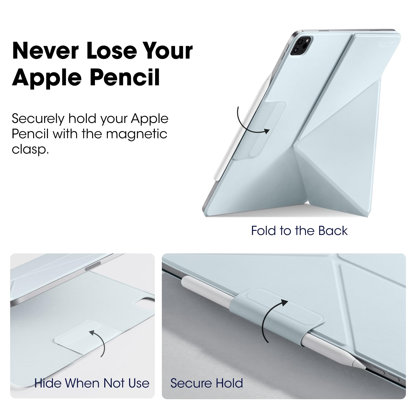 [Magnetic Design & Built-in Pencil Holder] The Powerful magnets hold your tablet firmly. Use the magnetic clasp to secure your Apple Pencil. Or fold and hide it when not used. You may attach and charge your Apple Pencil 2 as usual.