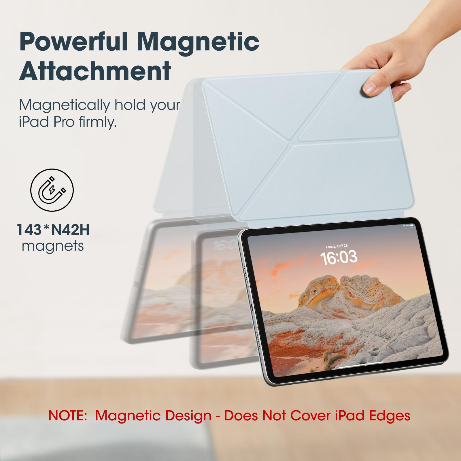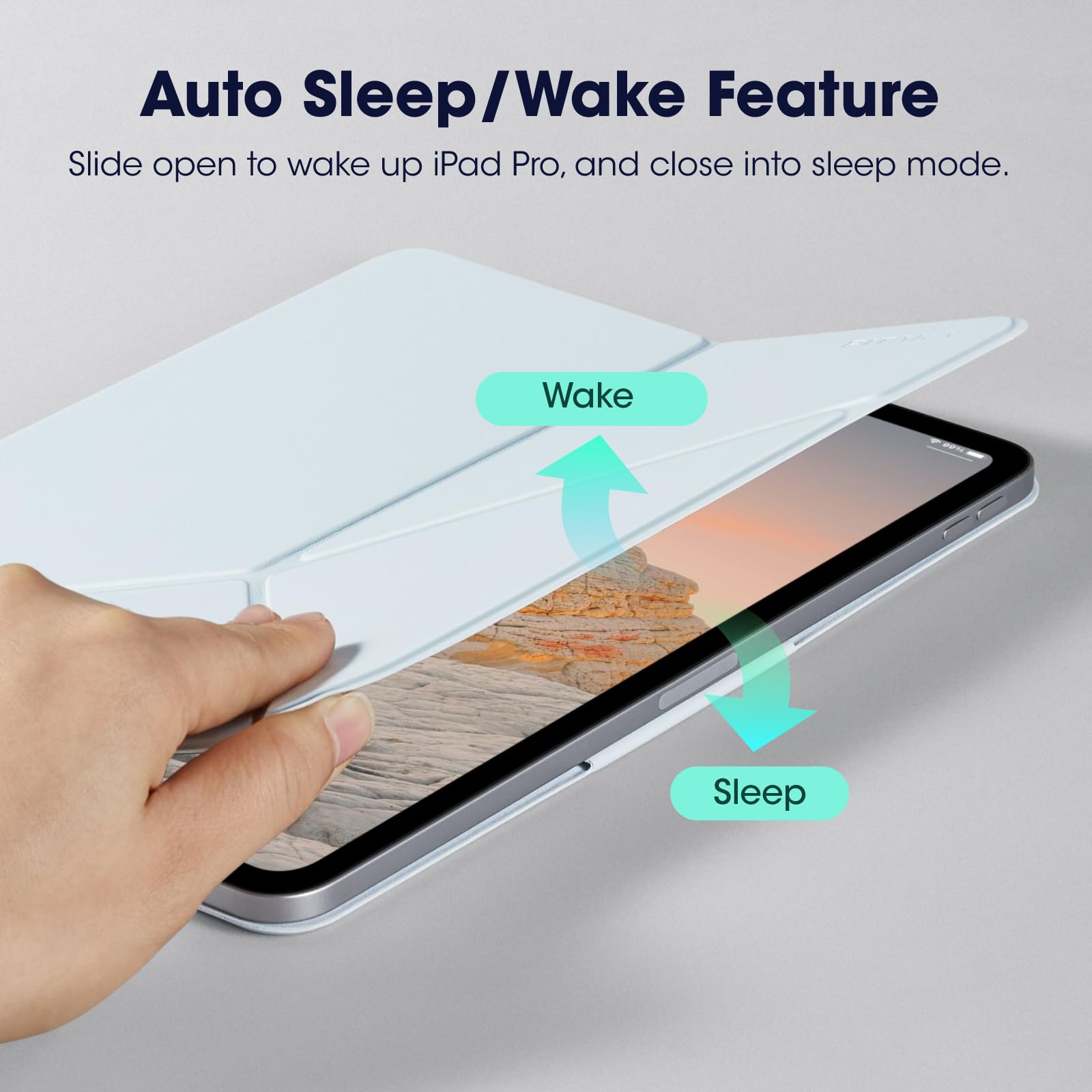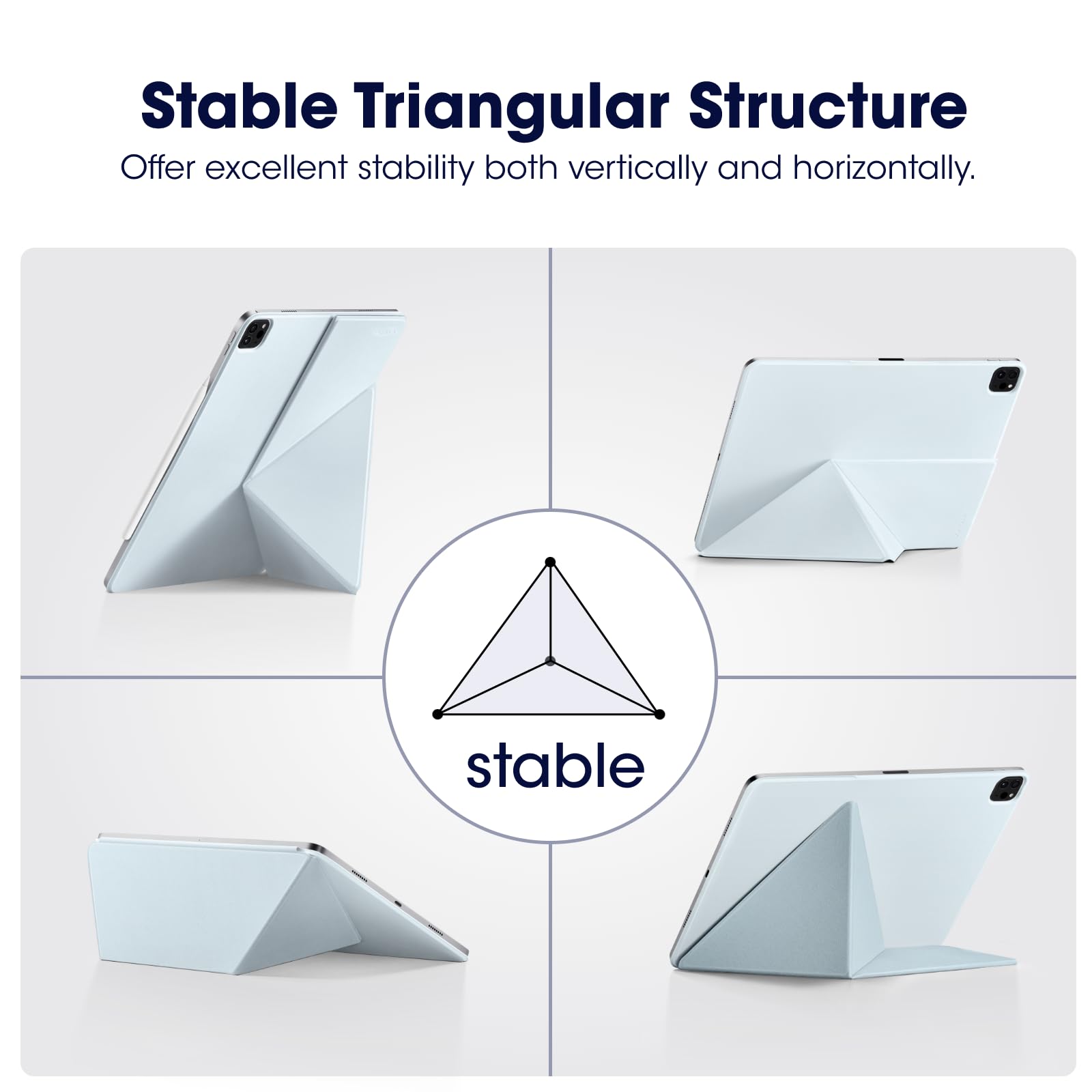 [4 Standing Angles] This iPad Air 11 inch case / iPad Pro 11 inch case can be folded in two ways, providing four different standing angles for taking Zoom calls, web browsing, drawing, etc. The triangle structure of the multi-fold folio ensures a stable standing position, whether in portrait or landscape.