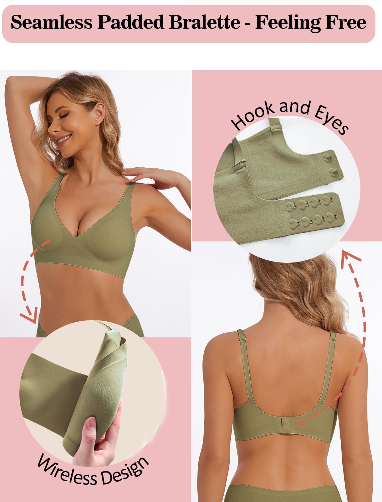 [Versatile Occasion & All Match - Bralettes for Women]: This wireless bra is an ideal choice for date, prom, party, home and casual daily match; wearing our v neck bra under top, t-shirt or dress, enjoy a seamless look that will complement any outfit
