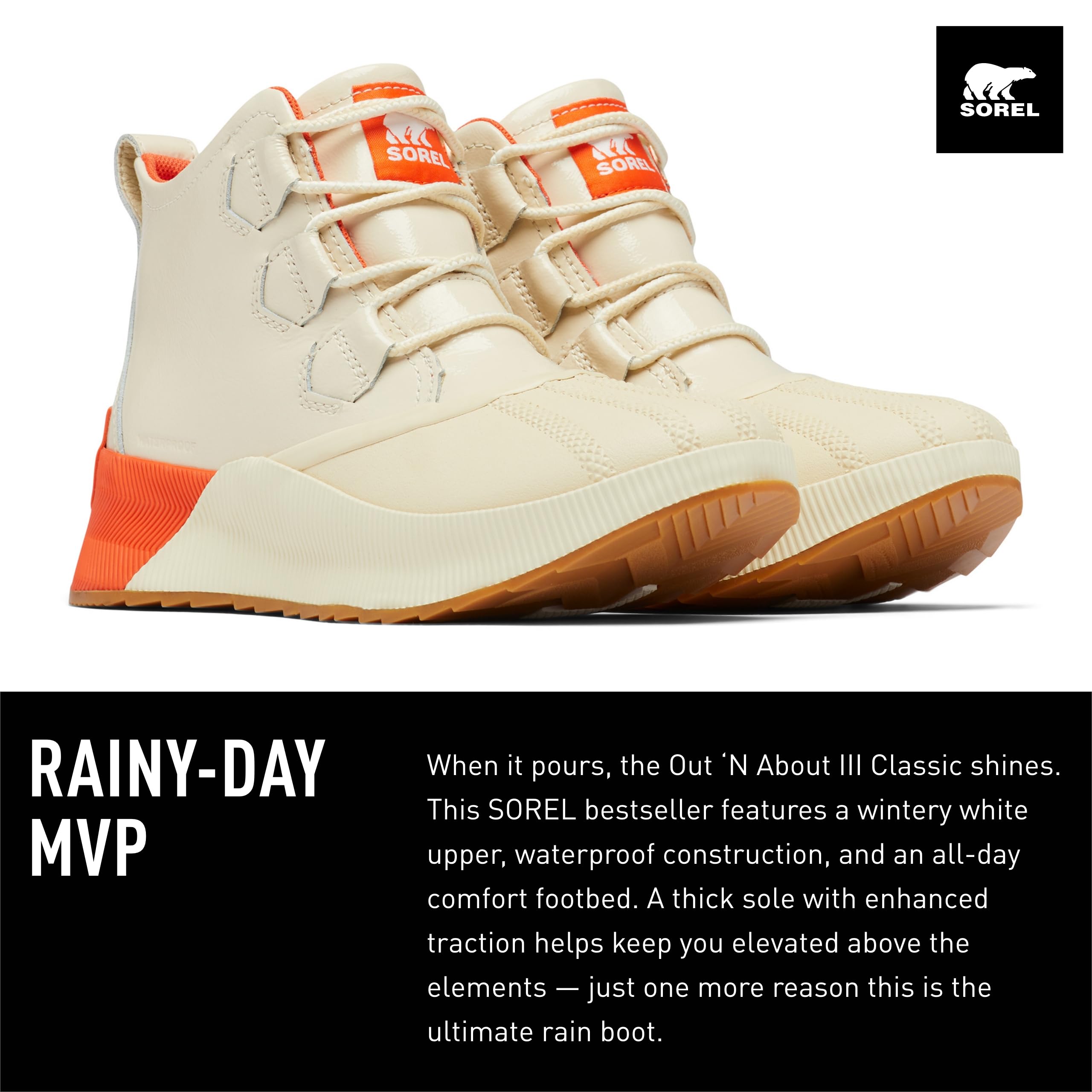Description The SOREL Women's Out 'N About III Low Waterproof Shoe delivers on both style and function. With its waterproof design, these shoes keep you dry in any weather. The mesh and suede upper, along with webbing overlays, create a fashionable and modern look that's perfect for sports, running, and outdoor activities. The shoe's design prioritizes stability. The eco-friendly textile top cover and removable, molded EVA footbed provide added security and comfort. The vulcanized midsole and rubber sole provide a stable grip on any surface, making them perfect for all-weather performance. Designed with durability in mind, these shoes are sure to become a staple in your wardrobe. Whether you're pairing them with workout clothes or everyday outfits, these sneakers are sure to complement your style effortlessly. Experience the perfect combination of style, comfort, and performance with the SOREL Women's Out 'N About III Low Waterproof Shoe. Founded in 1962, SOREL combines expert craftsmanship and of-the-moment design to create all-season footwear. What began decades ago with premium Boots, crafted with an unparalleled balance of construction and protection, is now a brand dedicated to both functionality and fashion. Here at SOREL, we believe you are your most powerful tool and the determination you find within is an unstoppable force. SOREL challenges the status quo by creating unexpected footwear that pushes the boundaries of function-first fashion. We stay in motion so you can push yourself forward.