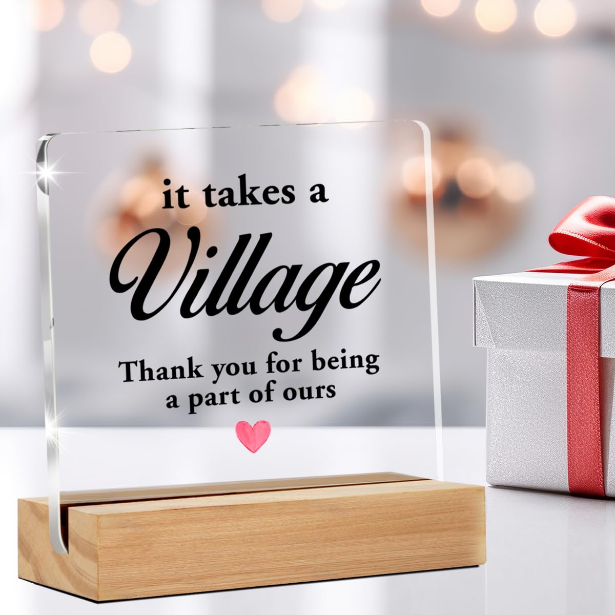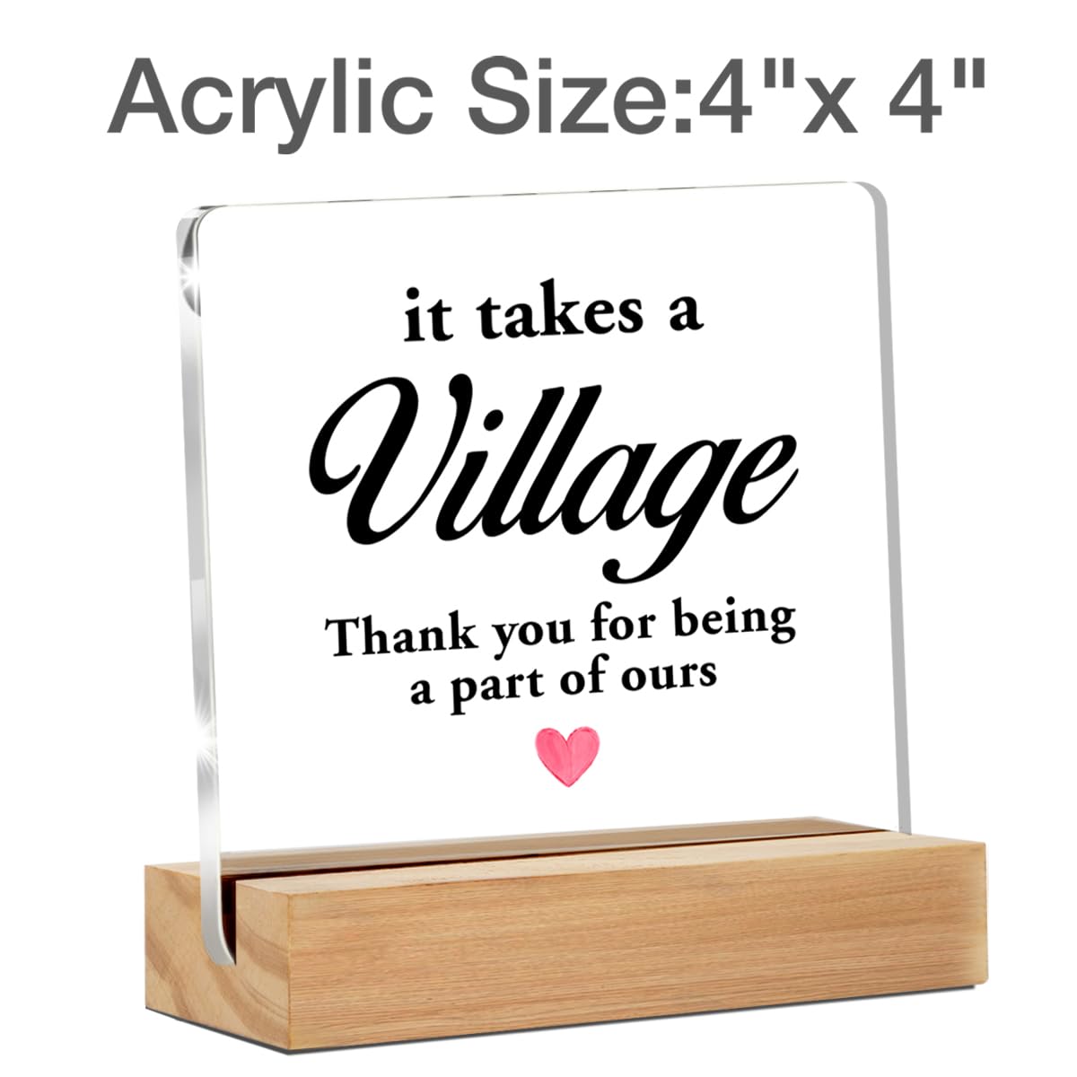 Perfect Size - 4 x 4 inches acrylic sign, 4 x 1.5 x 0.8 inches wood stand. Perfect size to decorate any tabletop.