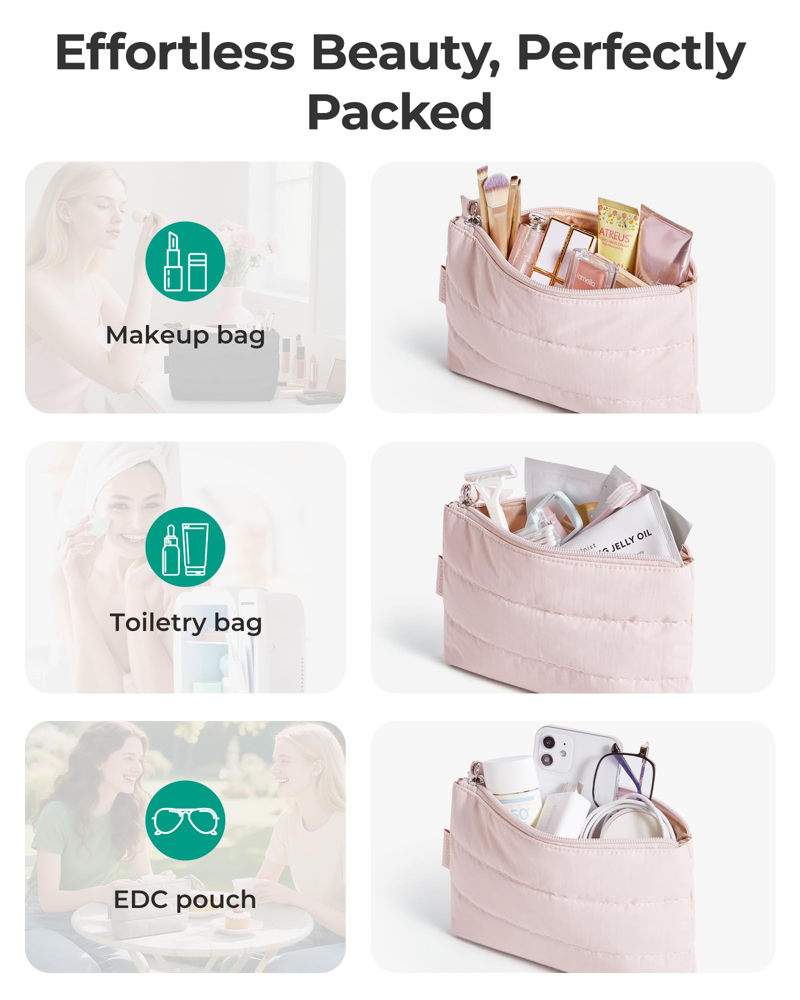 From Desk to Destination in 1 Zip - Perfect as a quick-touchup cosmetic pouch, minimalist toiletry bag, or desk essentials organizer. Wherever life takes you, it’s ready