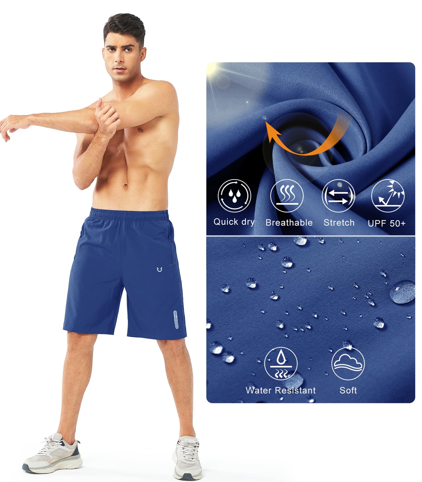 Lightweight & Breathability: Men's athletic hiking Shorts are made quality 4-Way Stretch/breathable and quick-drying fabric helps to wick away moisture and dry quickly keep you cool A synthetic of polyester and spandex can be very durable, abrasion-resistant, and stretchy enough to allow for better mobility