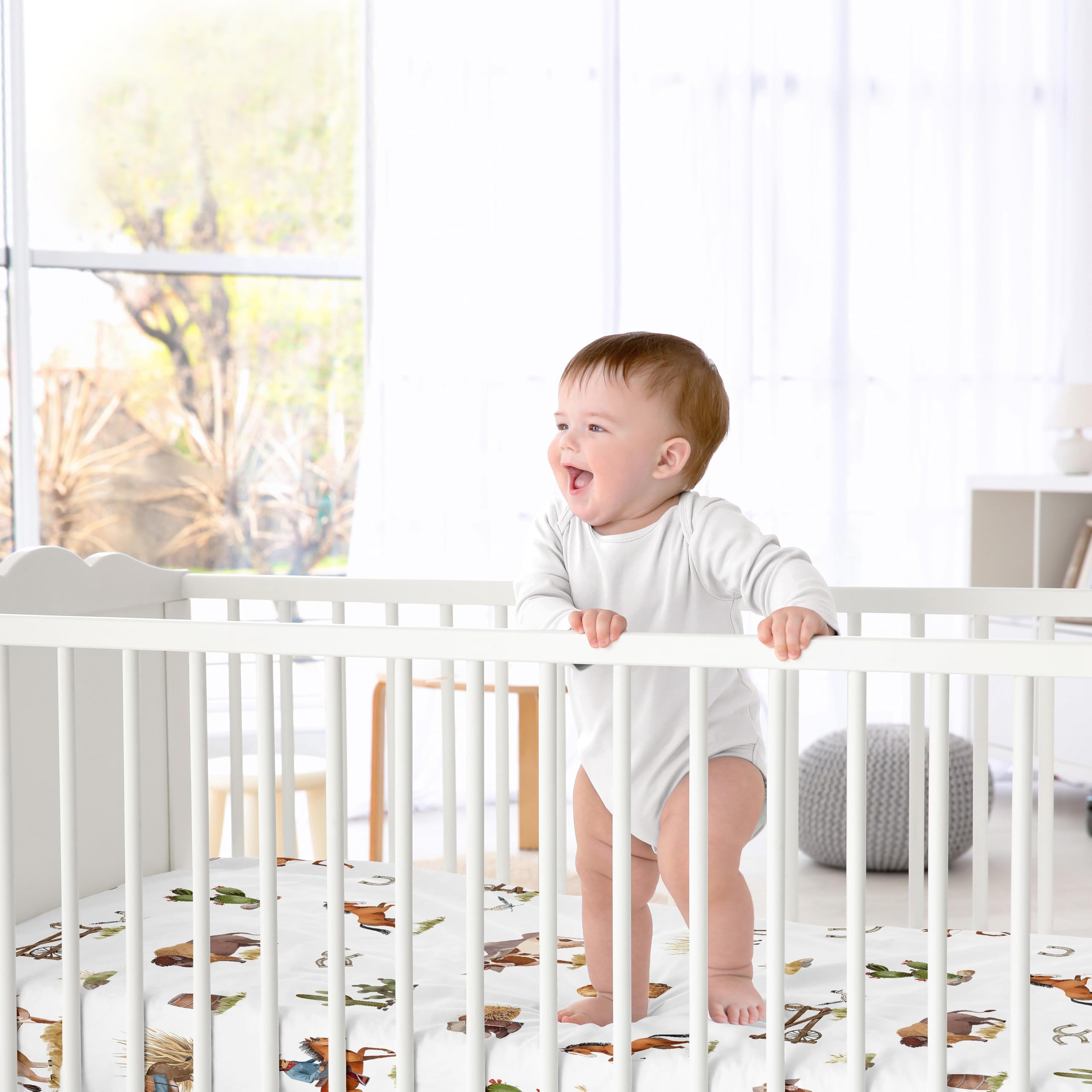 DESIGNED IN THE USA: By real parents who understand the need for comfort, practicality, and style. Sweet Jojo Designs is a small, women owned business. The mom's on our team know a crib mattress sheet is first priority for your baby essentials to ensure a restful night of sleep. We use top fabrics and designs to create soft crib sheets that are stretchy & comfortable for your infant or toddler. We've studied the latest trends in western crib sheets for baby boy to bring you the finest product.