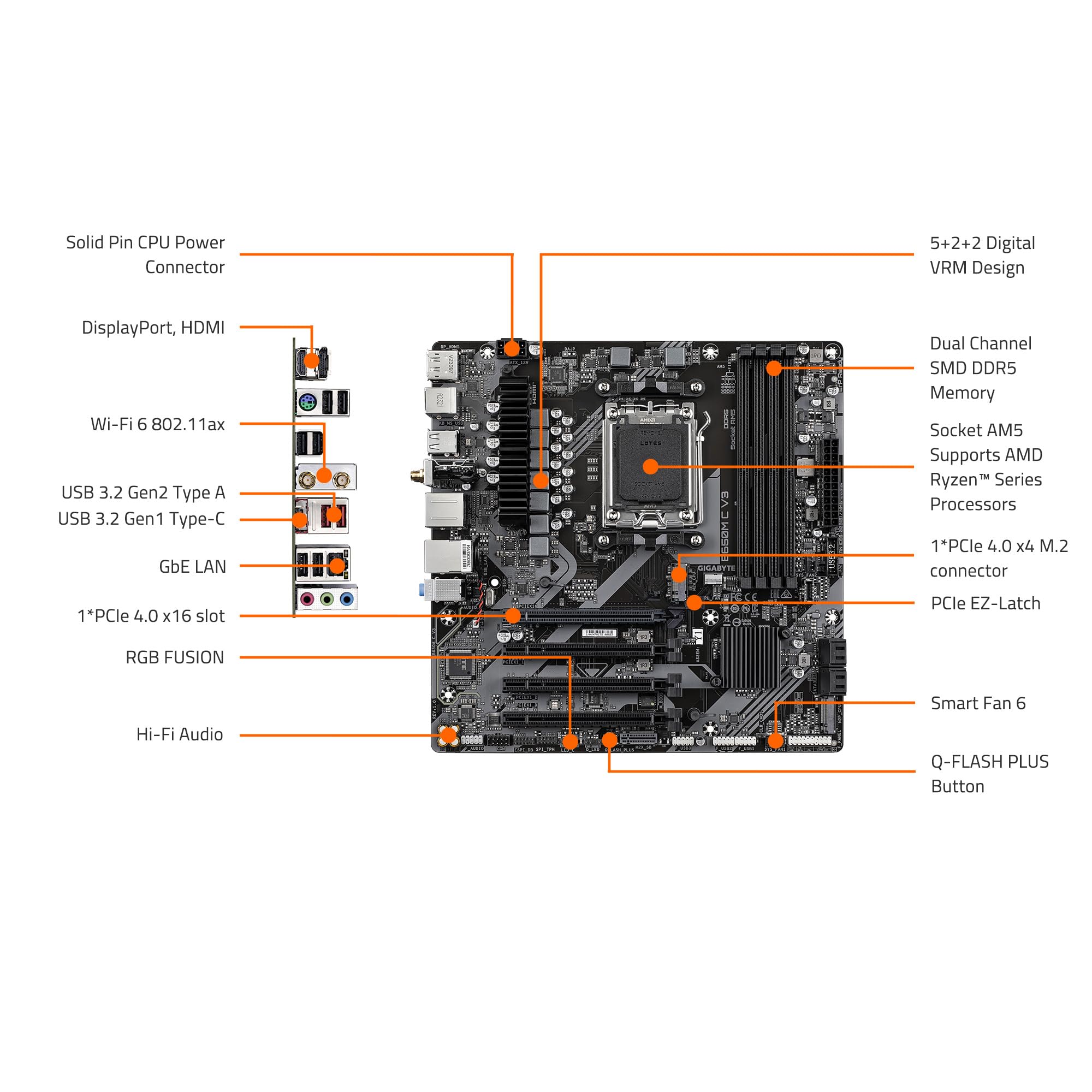 A new era is here. The B650M C V3 supports AM5 Processors and features unparalleled performance. GIGABYTE B650 motherboards come with upgraded power design, high grade storage standards, and outstanding connectivity that enables you to optimize your performance.