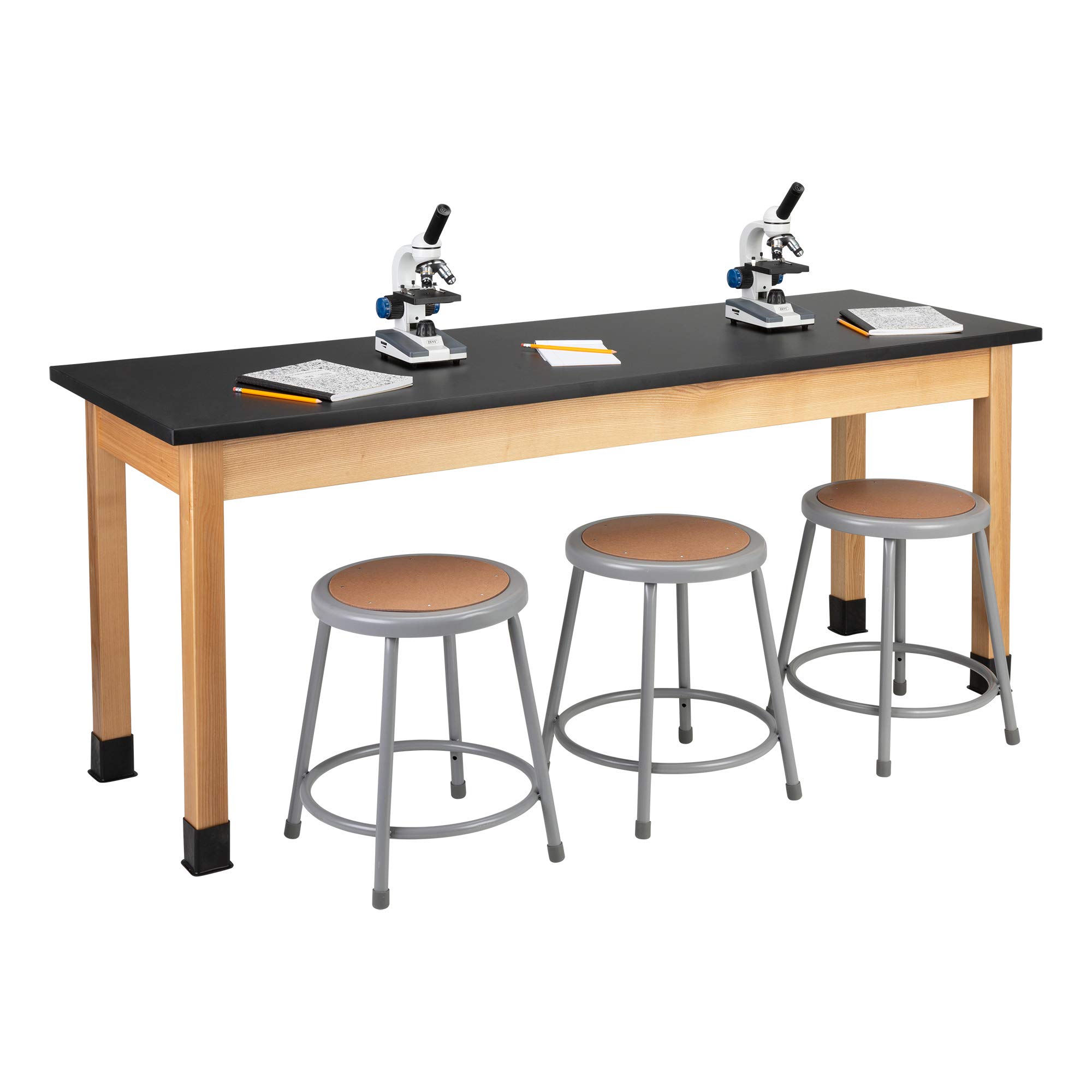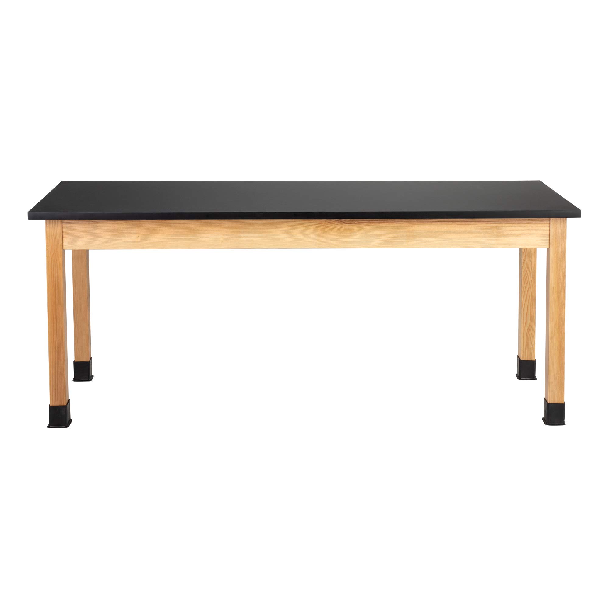 Learniture's Science Lab Table w/ Chemical Resistant Top adds ultra-durable workspace to any science lab. The solid ash wood frame withstands years of heavy use, and the chemical-resistant top with MDF core is impervious to most commonly used lab chemicals. Thirteen-gauge, steel corner braces attach the legs for even greater durability, while adjustable glides prevent the table from wobbling on uneven floors. Thick rubber leg boots protect the table from spills. Meets MAS Certified Green environmental industrial standards.