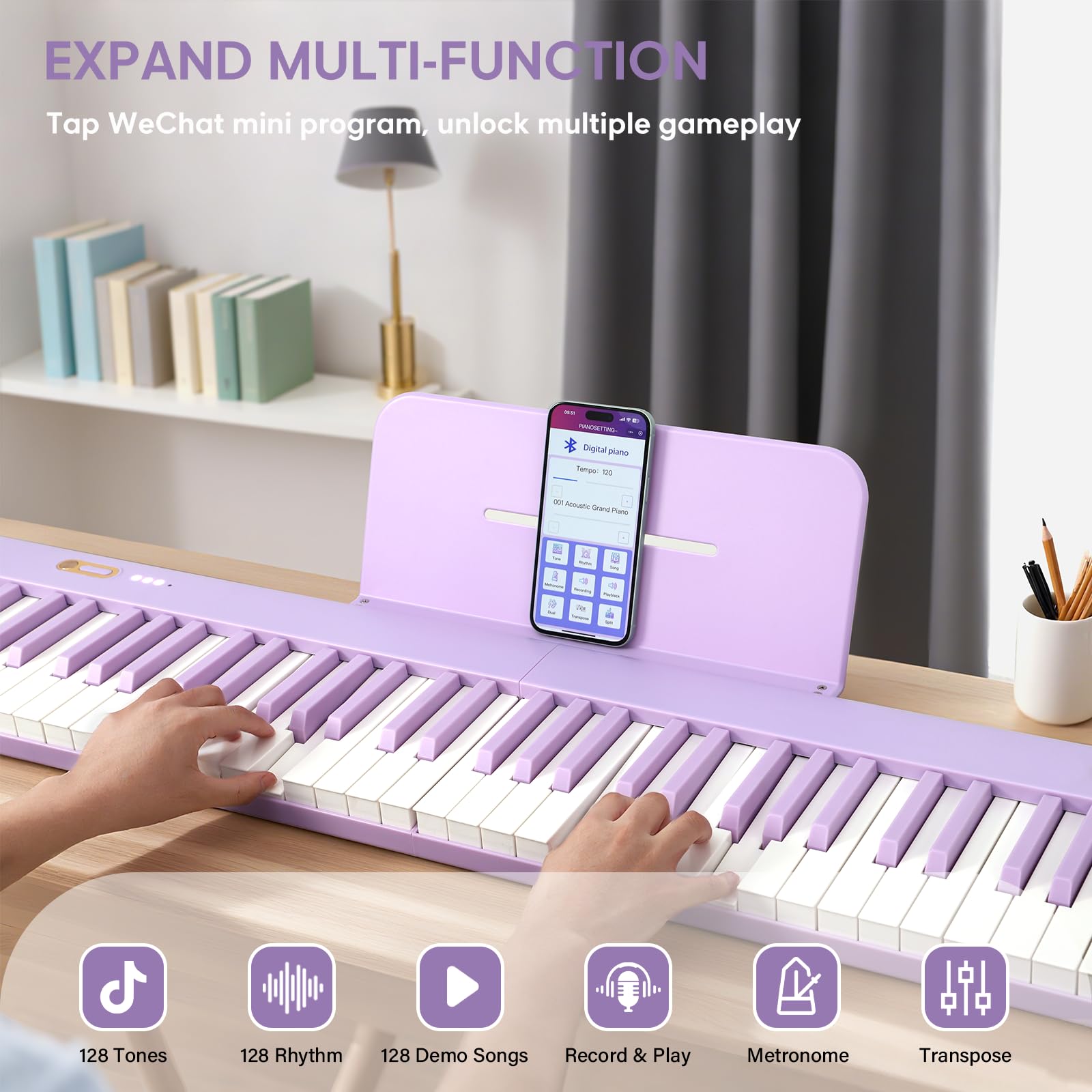 PORTABLE DESIGN: The ultra-light piano keyboard (under 7lbs) slips right into a bag or car trunk, beach picnics, park hangs, or spontaneous road trips, Sorted. With a 2000mAh battery (lasts 8+ hours), it fully charges in the time it takes to have afternoon tea, you’re ready for all-day jams. Because music shouldn’t wait—and neither should you!