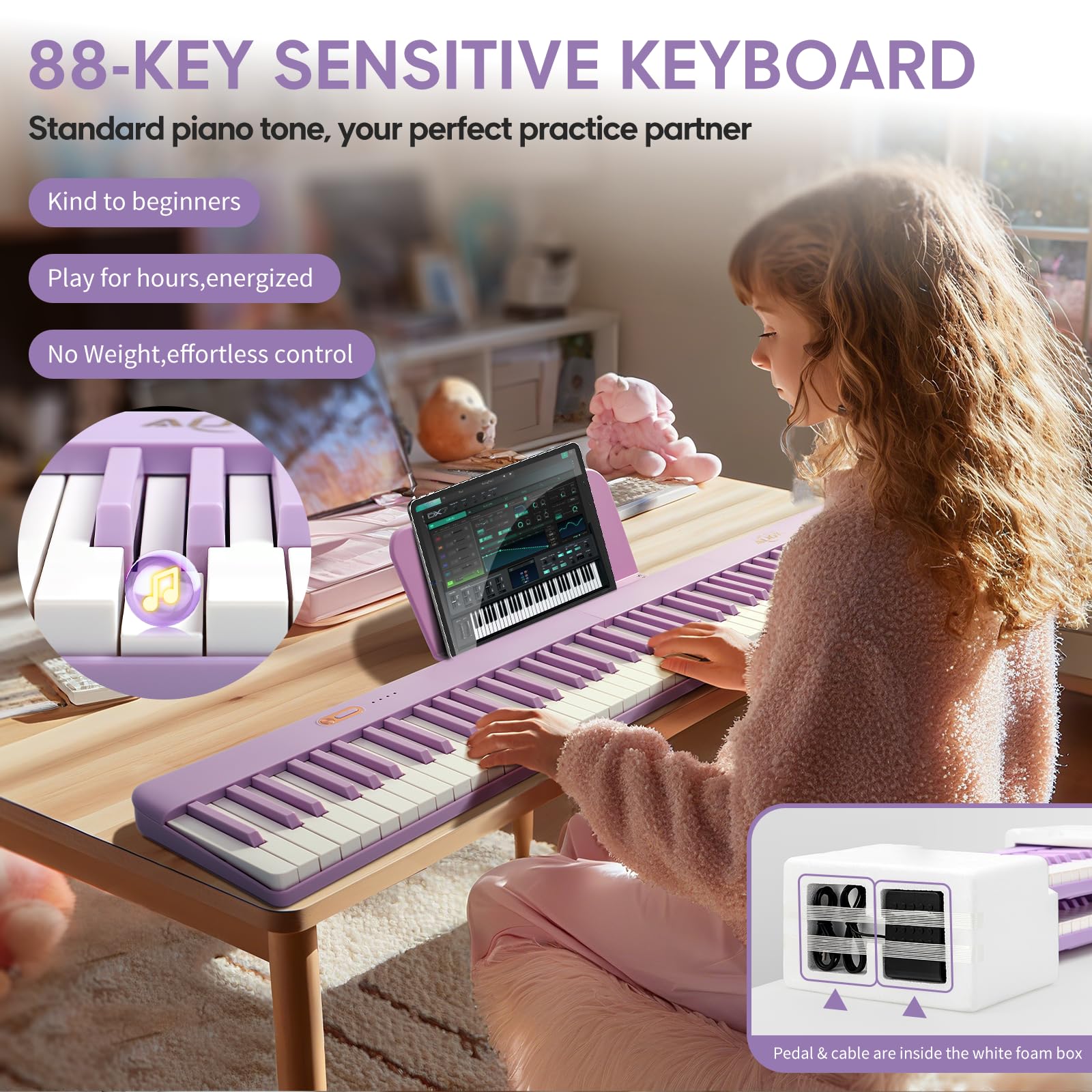 SWEET PRESENT FOR HER: Surprise her with this exclusive purple-key keyboard, the ultimate birthday/Christmas gift for daughters, girlfriends, or besties! ☆Why she'll LOVE it: Social media-worthy, unique purple design.Surprisingly affordable (looks 2x more expensive); Ready-to-play right out of the box, and high practical value.