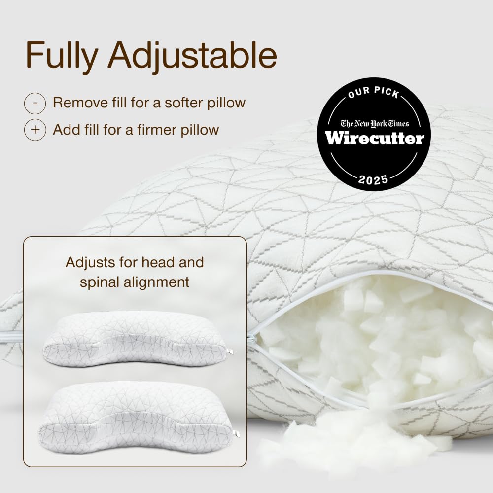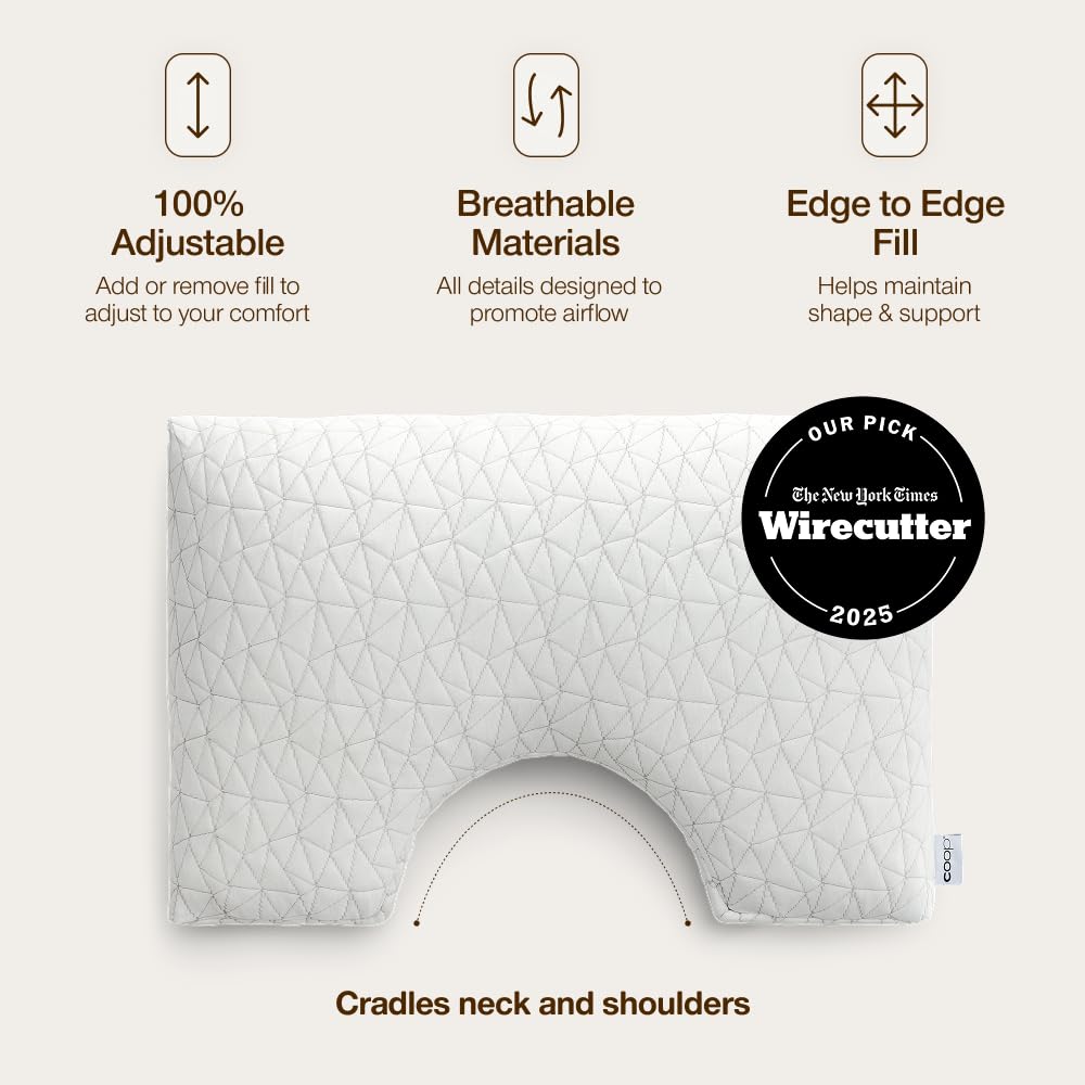 Fully Adjustable Fill: Same Oomph! technology as all Coop memory foam pillows. Add or remove fill from Coop cervical pillow for proper alignment, optimal loft for all shapes and sizes.