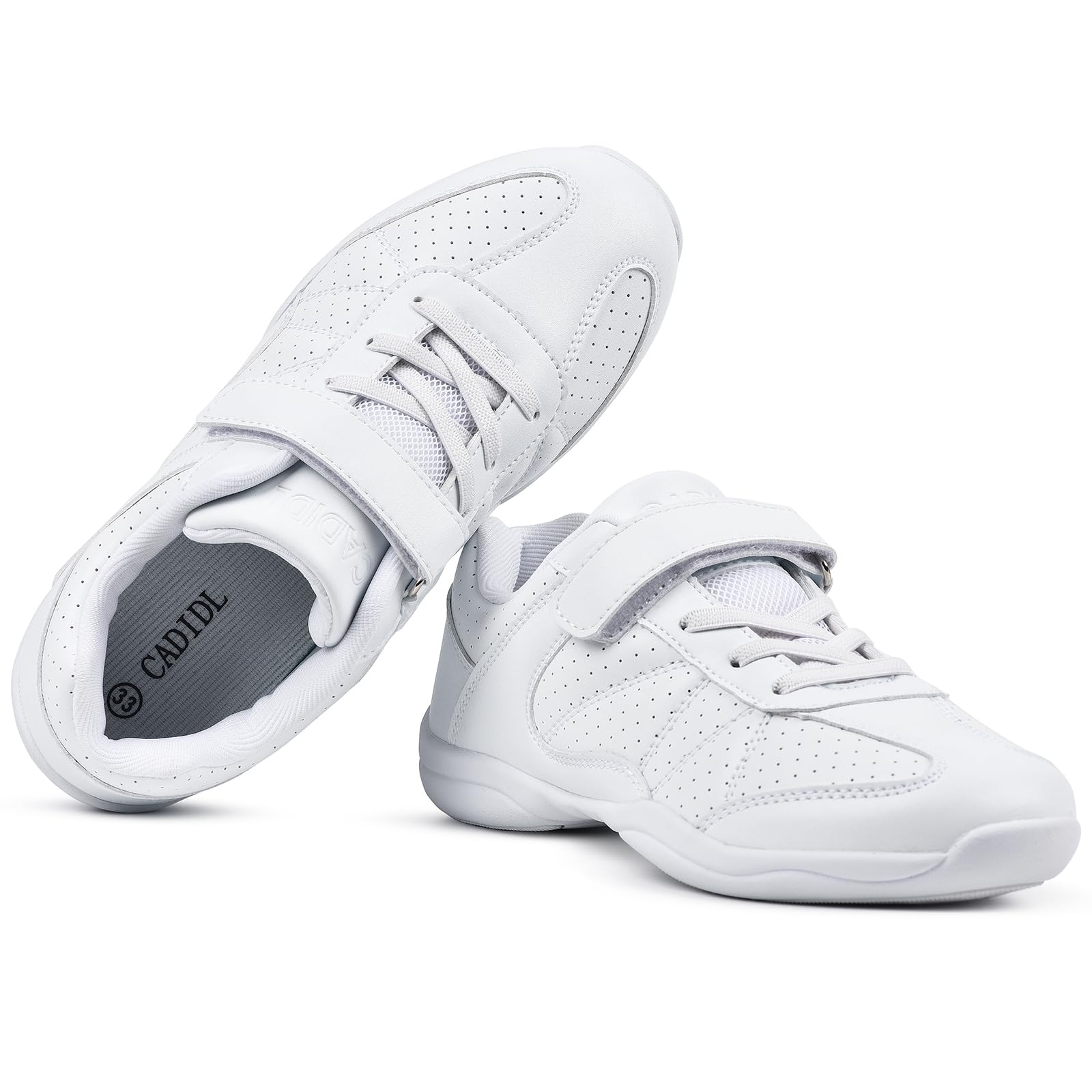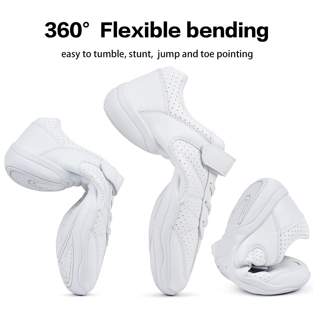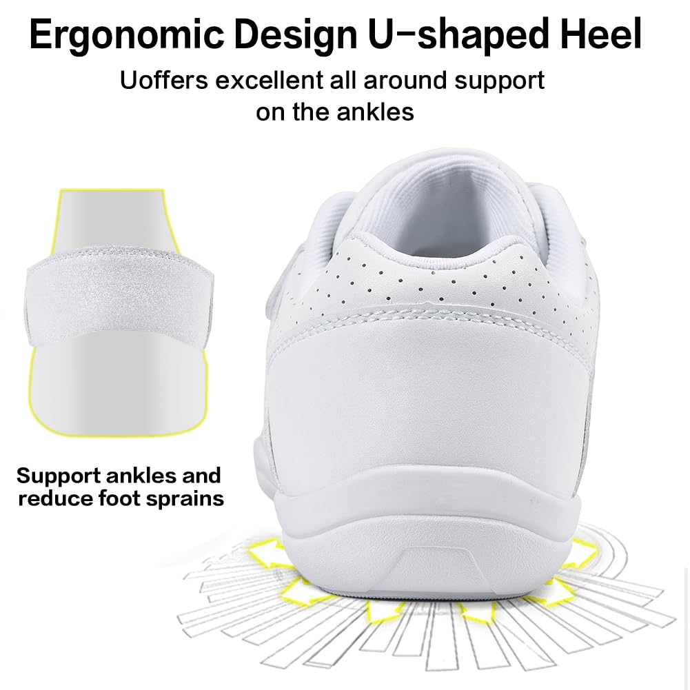 Durable White Cheer Shoes: Utilize a synthetic leather upper for durable and intensity. And our cheer shoes are durable enough to accompany you through your daily training and competition
