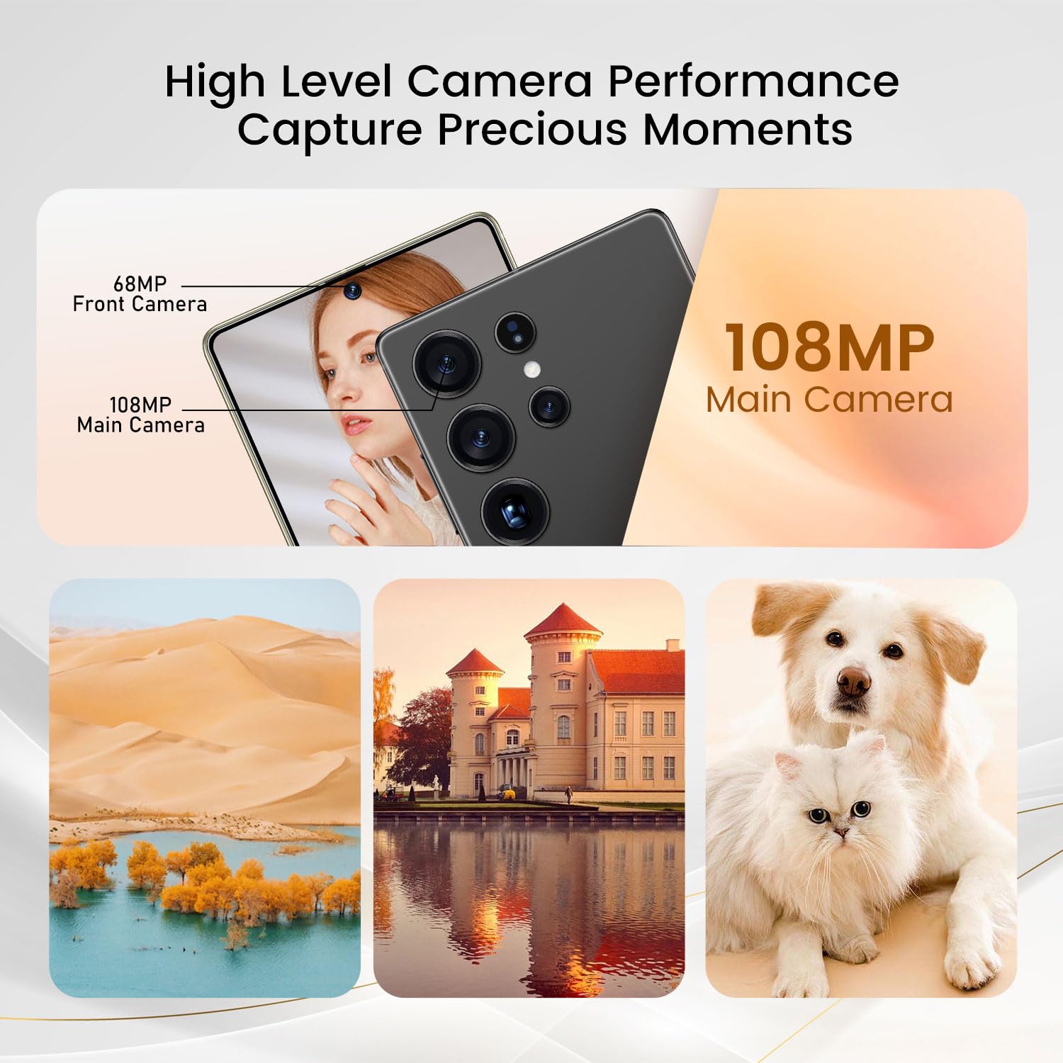 Professional-Grade 68MP + 108MP Dual Camera System: Capture breathtaking photos and videos like a pro.The advanced dual-camera system features a primary 68MP Ultra-High Resolution sensor that captures incredible detail, even in challenging lighting, and allows for lossless zoom.The secondary 108MP sensor excels in ultra-wide shots, macro photography, or depth sensing for stunning portraits with beautiful bokeh. Expect sharp, vivid images day or night, vibrant video recording, and versatile shooting modes that put DSLR-like quality in your pocket. Capture every moment with unparalleled clarity and creativity.