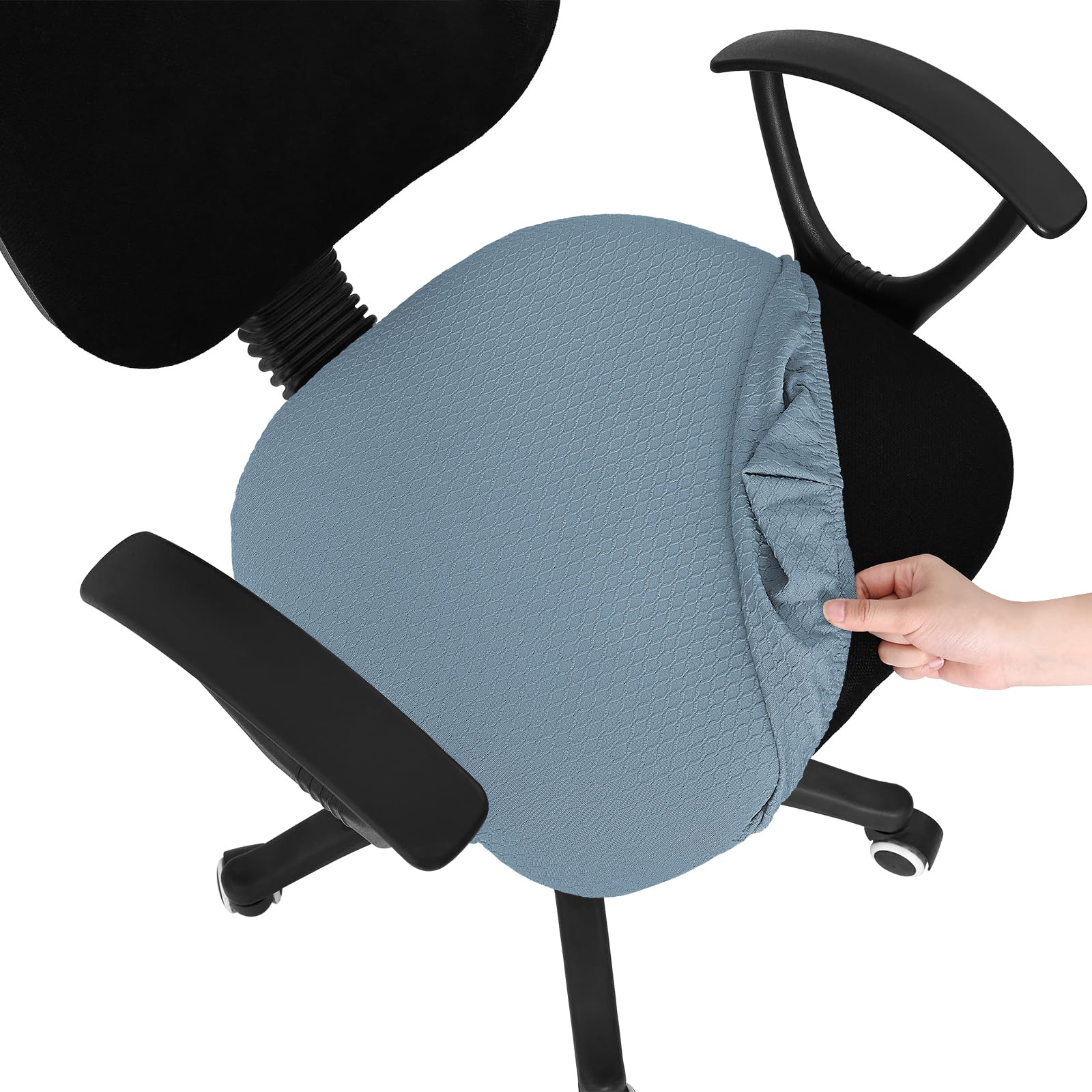 Smiry Stretch Rhombic Lattice Jacquard Office Computer Chair Covers Make your office chair looks like new with these super stretchable office chair covers. Sturdy fabric with elastic edge secures the cover in seconds and easily hides torn, dirty or worn-out upholstery Features: - Removable Office Chair Covers - Soft & Stretchy Spandex Jacquard Fabric - Anti-dust, Protect and Decorating Your Office Chairs - Anti-wrinkle and Anti-slip, Machine Washable - Perfect Fit with Sewn-in Elastic Hem Full Satisfaction Guarantee: This office chair seat cover is sold with a full money-back guarantee. If you're dissatisfied with your purchase for any reason, contact us for a replacement or full refund.