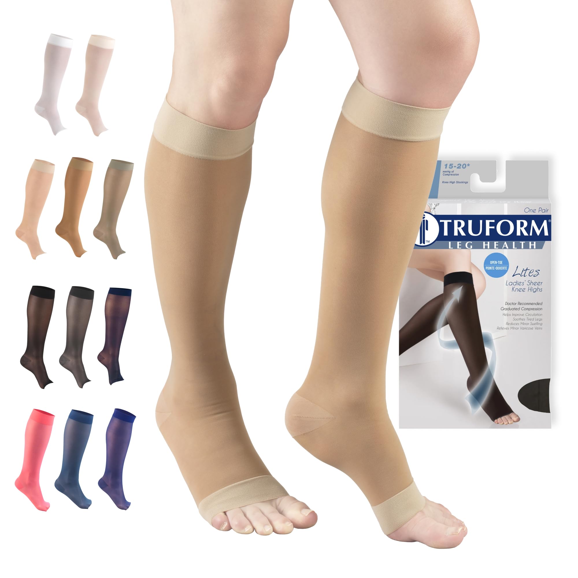Helps relieve swelling, varicose veins, spider veins, sore aching tired legs, edema, DVT blood clots. Nylon-spandex materials