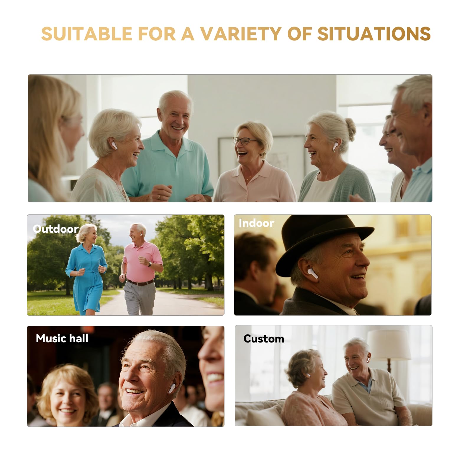 Intelligent 16-Channel Sound Processing:Hearing aids for seniors advanced digital chipset automatically analyzes your environment, instantly suppressing feedback while enhancing speech clarity. Choose between three smart modes (indoor, outdoor and music hall) for perfect hearing in any situation – from quiet libraries to bustling family gatherings.