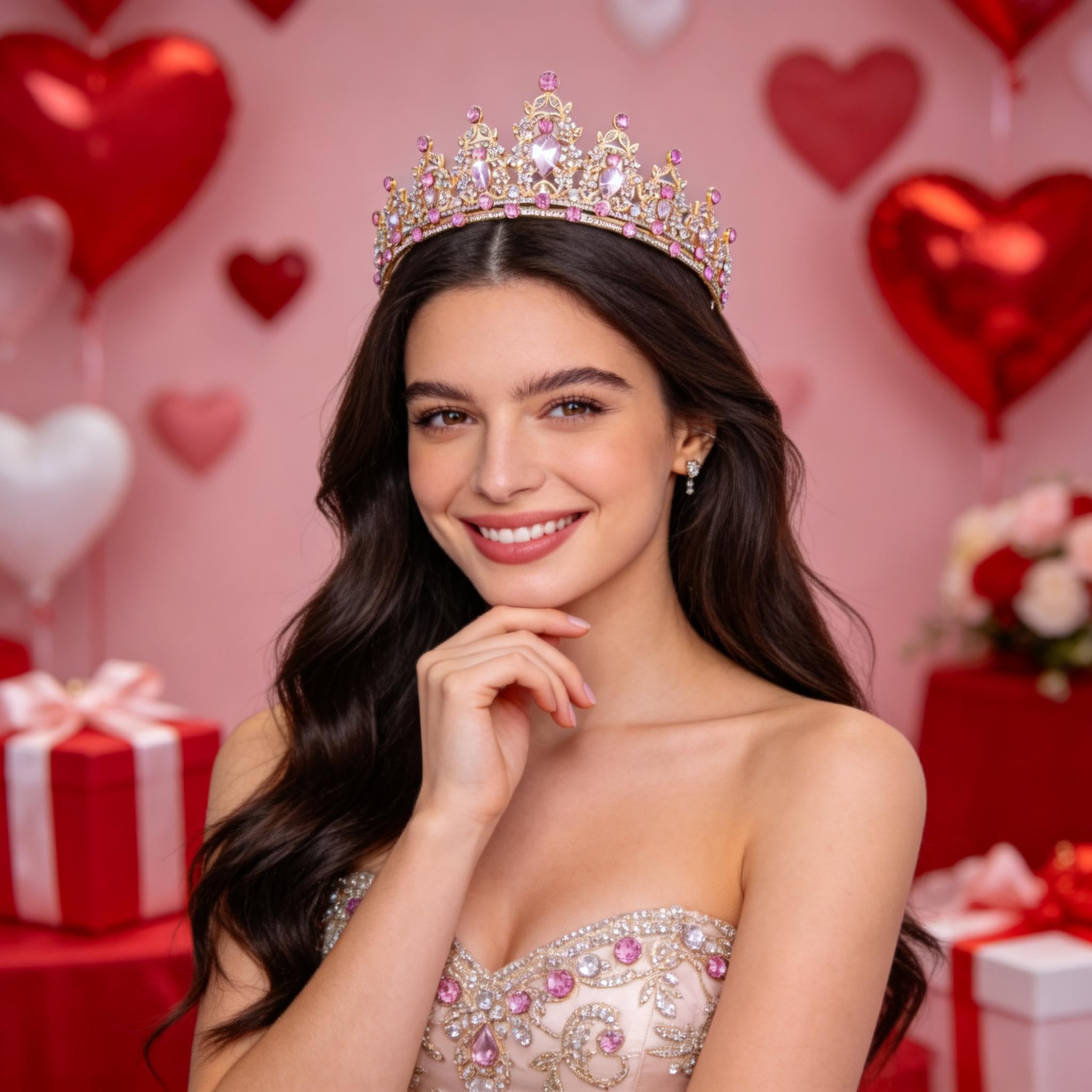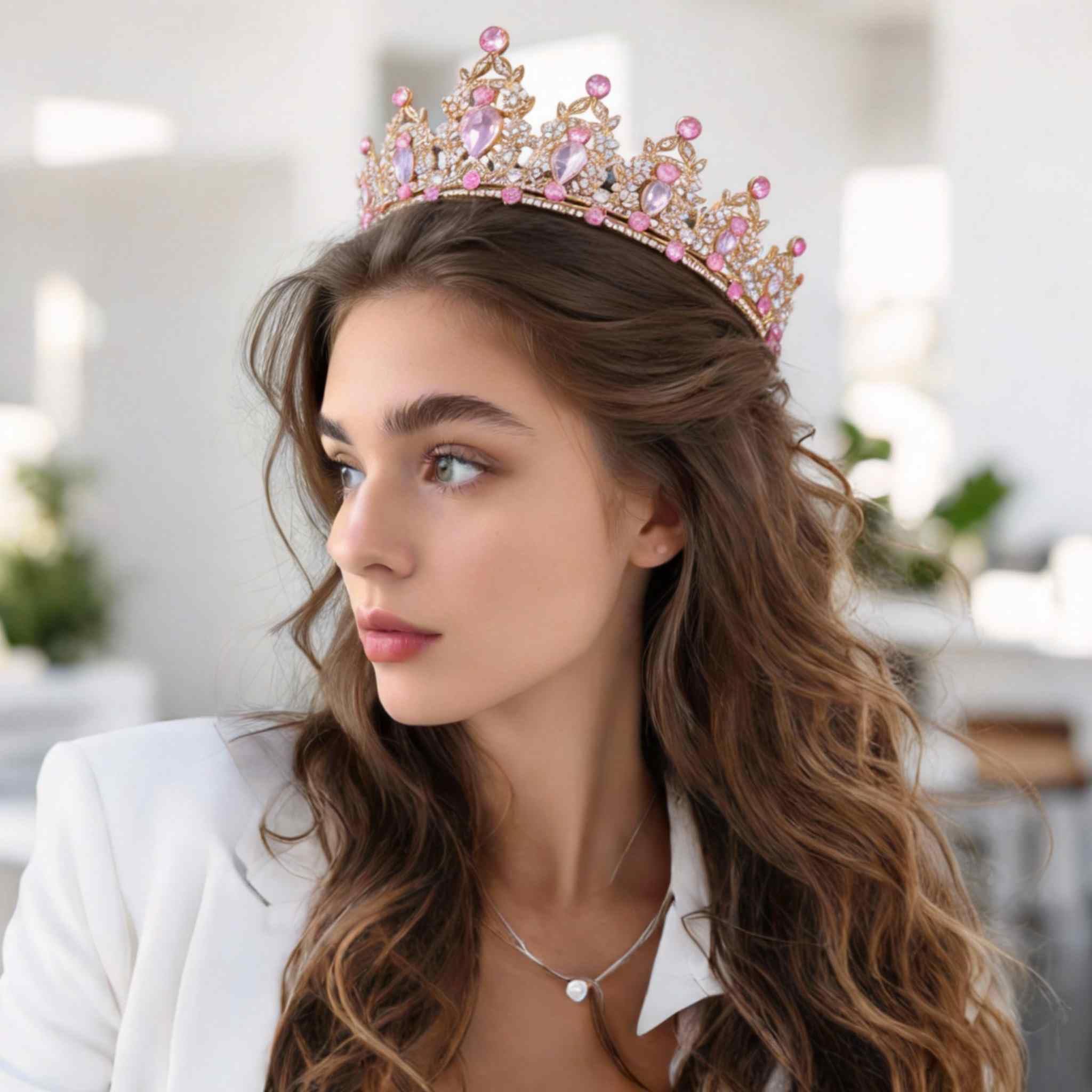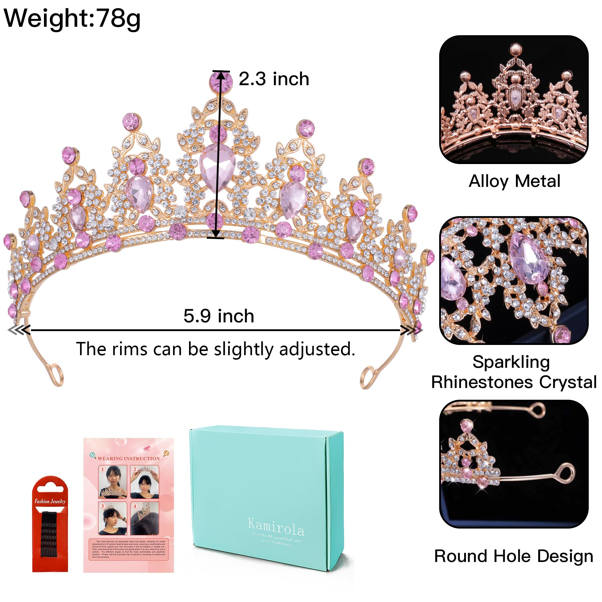 Pink Crown: This gold tiara is handmade by durable alloy and rhinestone. Pink Crystal Crown is Beautiful and practical., well-made and very solid, light and and comfortable to wear