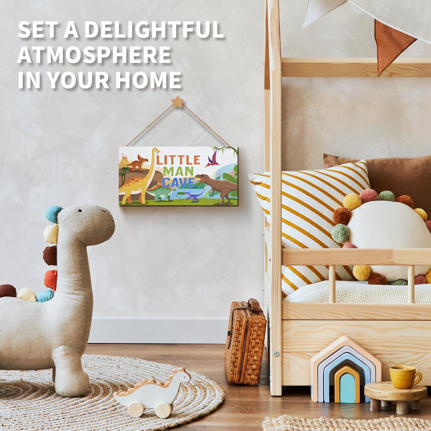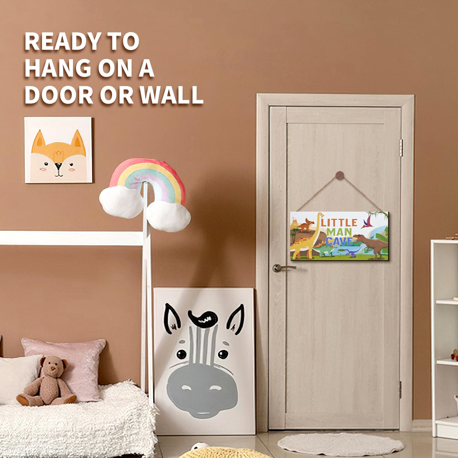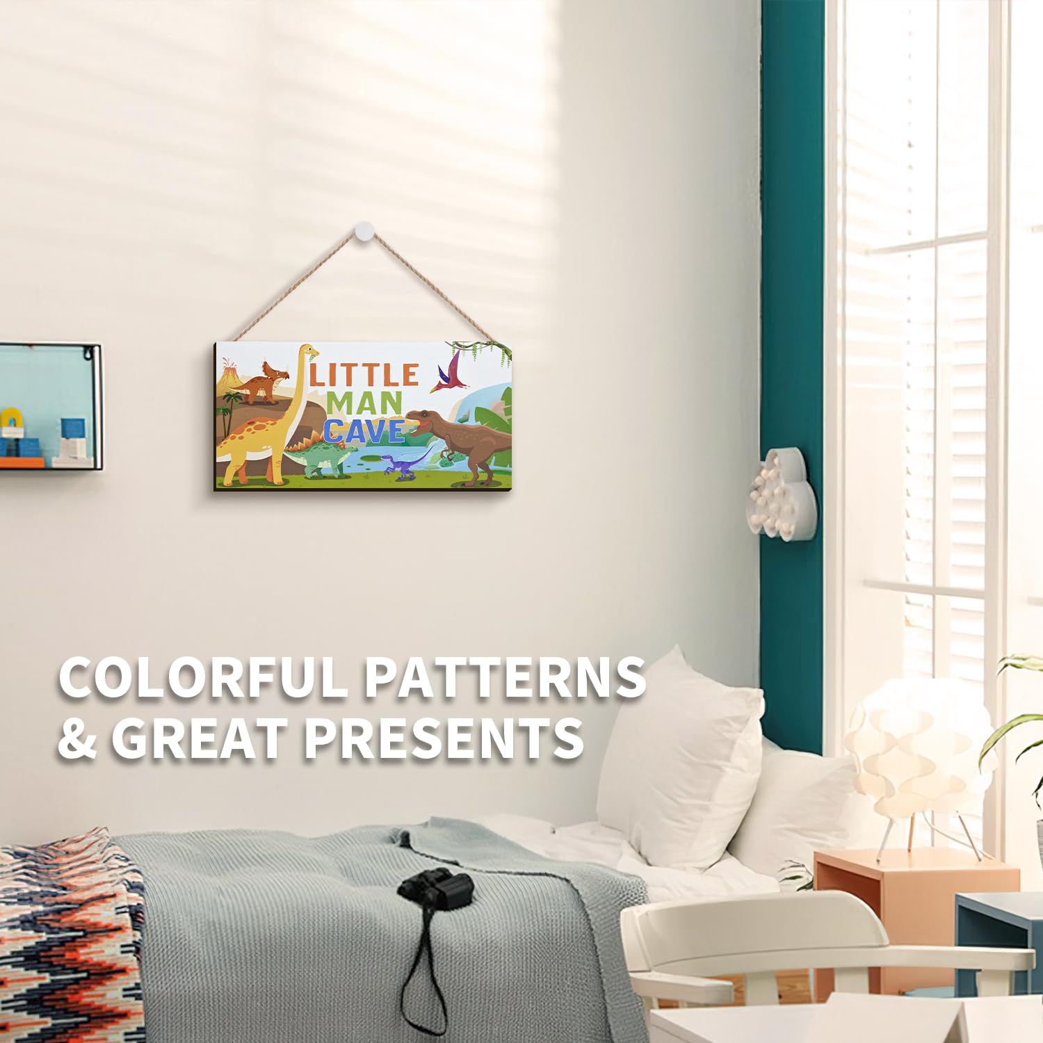 PERFECT BOYS ROOM DECOR: The Little Man Cave Sign has a variety of cute dinosaur patterns designed to add more fun and adventure to your boy's room.