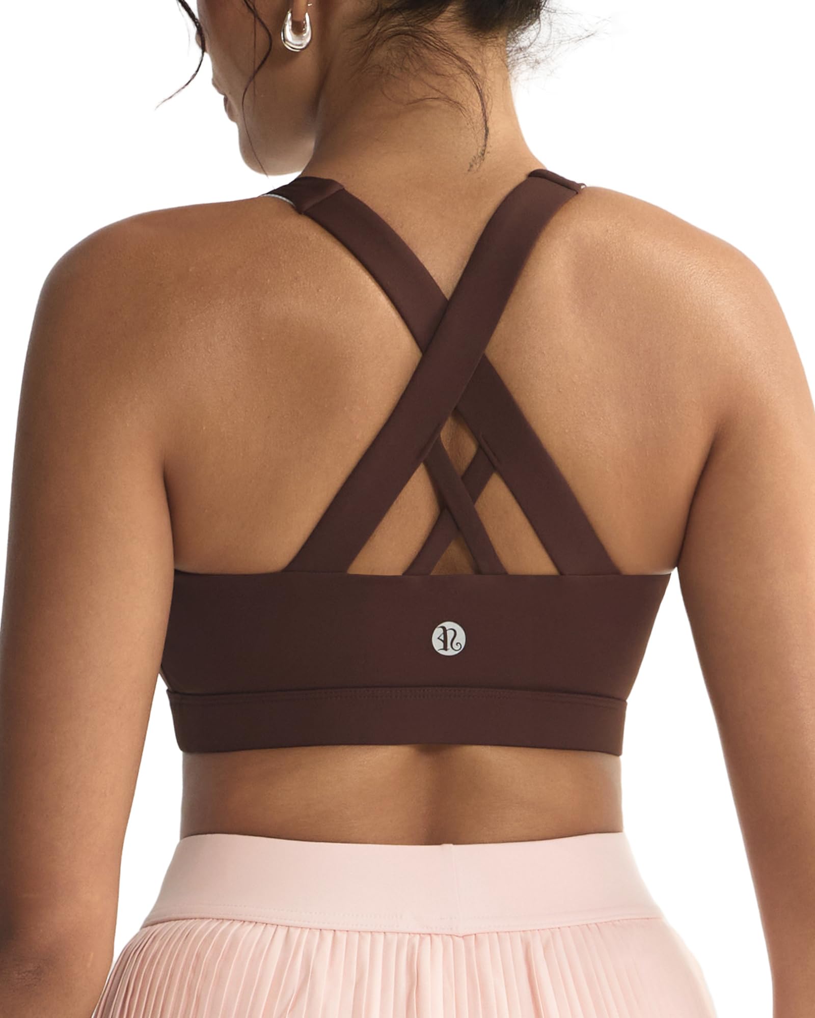 WHY WE MADE THIS:Need a sports bra that does it all? Look no further! This sweat-wicking cross-strap bra gives you the coverage and support you need for yoga, run, and the gymβwithout restricting your movement or breath. fabric has added lycra that allows the bra to stretch with you and retain its shape over time. Slip in optional, removable cups for full coverageβif you want it. This bra is intended to provide medium support for great shape retention, long-lasting comfort.