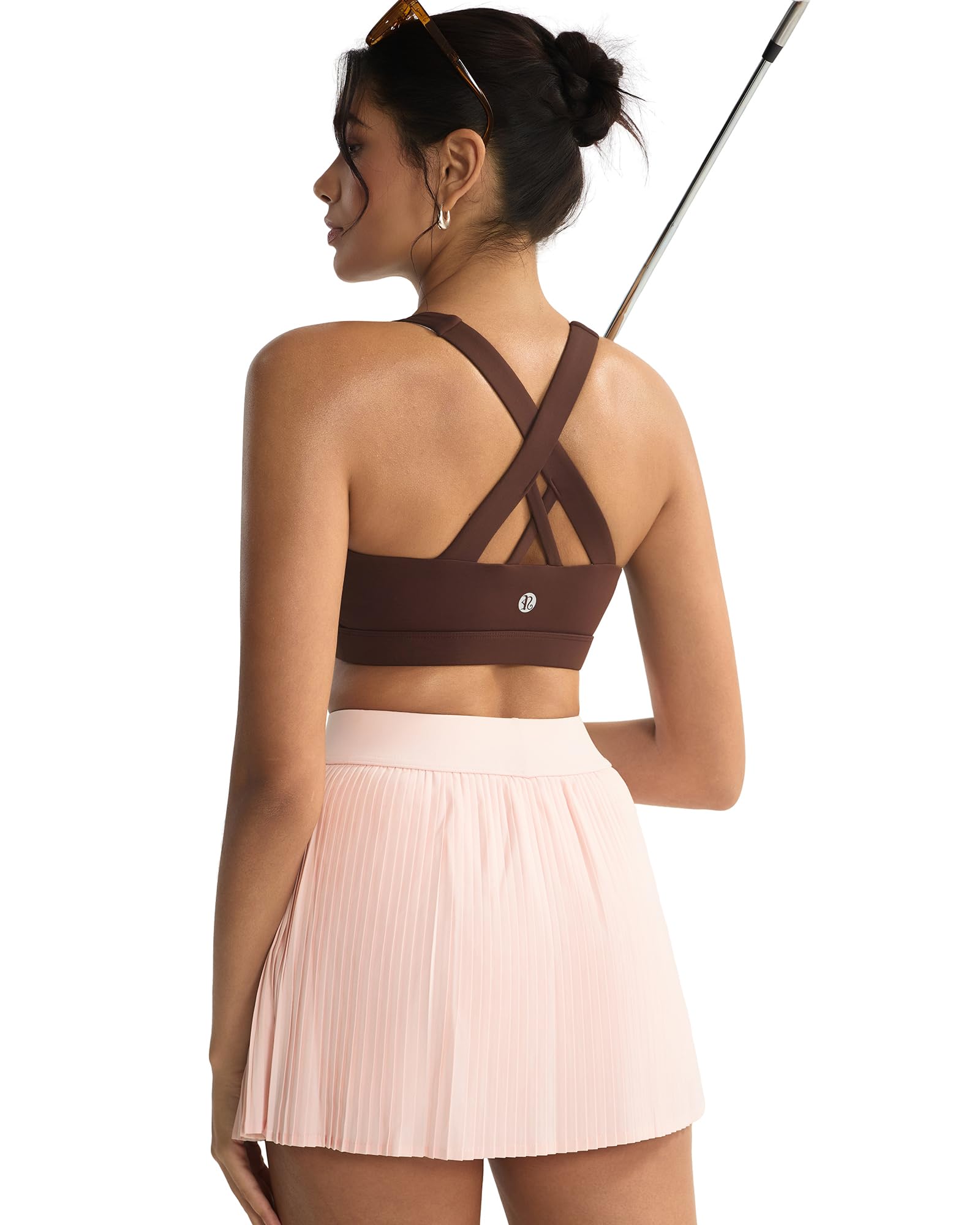 UNIQUE DESIGN:Criss Criss-cross back detailing gives the V-neck Bra its signature style. But it doesn't just look good, it's hard working. Heat transfer tech, a lined shelf bra, and the sports bra for women wrapped in durably soft performance stretch fabric keep you comfy and supported.The cotton-like meterial, soft and comfortable to wear.Crisscross back straps let you twist with ease, Sexy Crossback design offers a extra back support, fashionable and stylish, Stretch Fit Sports Yoga Gym Bra.