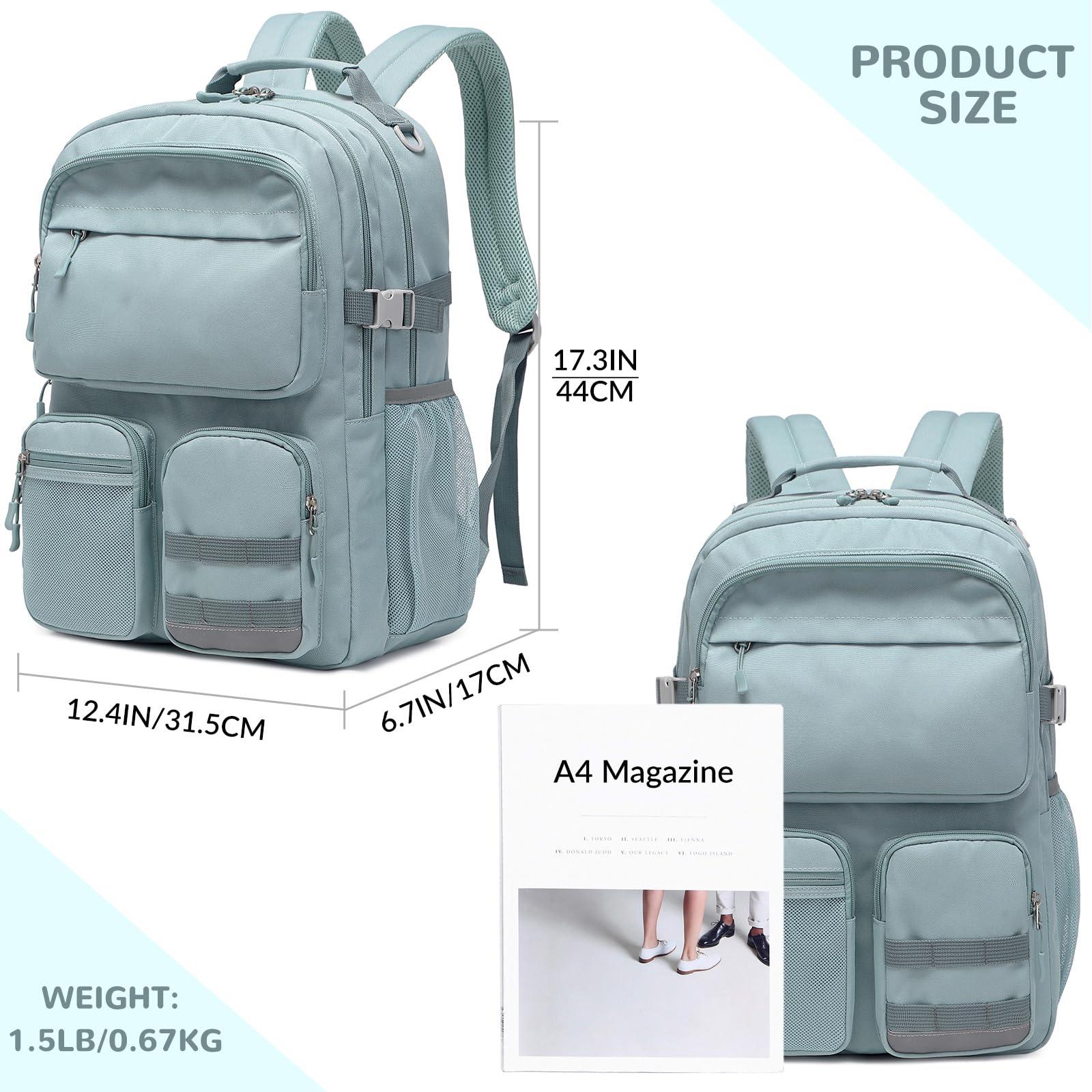 [Large Capacity] - Size: 12.4×6.7×17.3 inches, it is large enough to carry everything you need. The main room contain 15.6 inch laptop compartment can hold textbook, tablet, chargers, power bank and clothes.