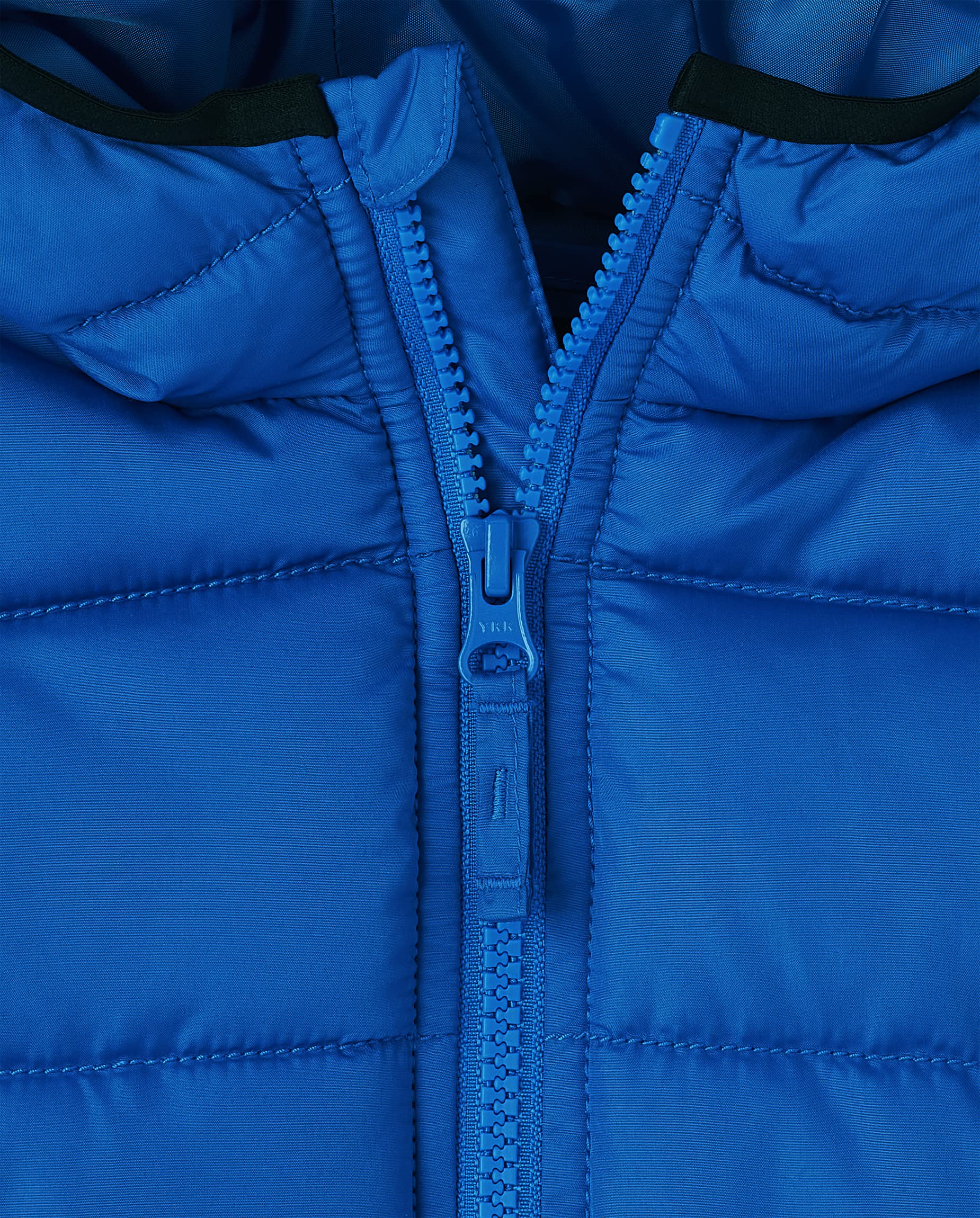 PUFFER JACKET — He's ready for cold weather with a jacket that's warm and water resistant