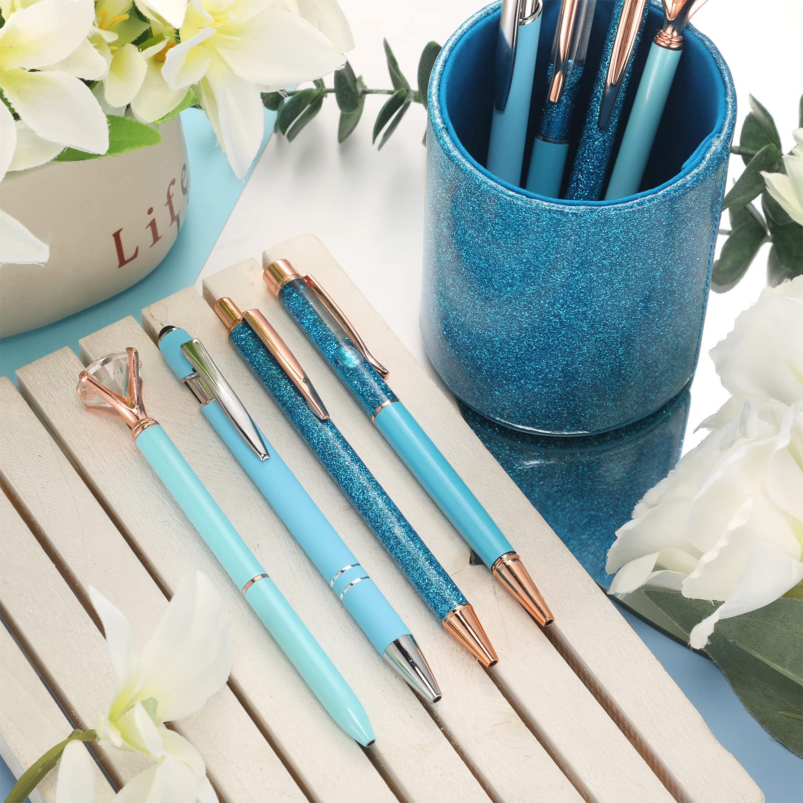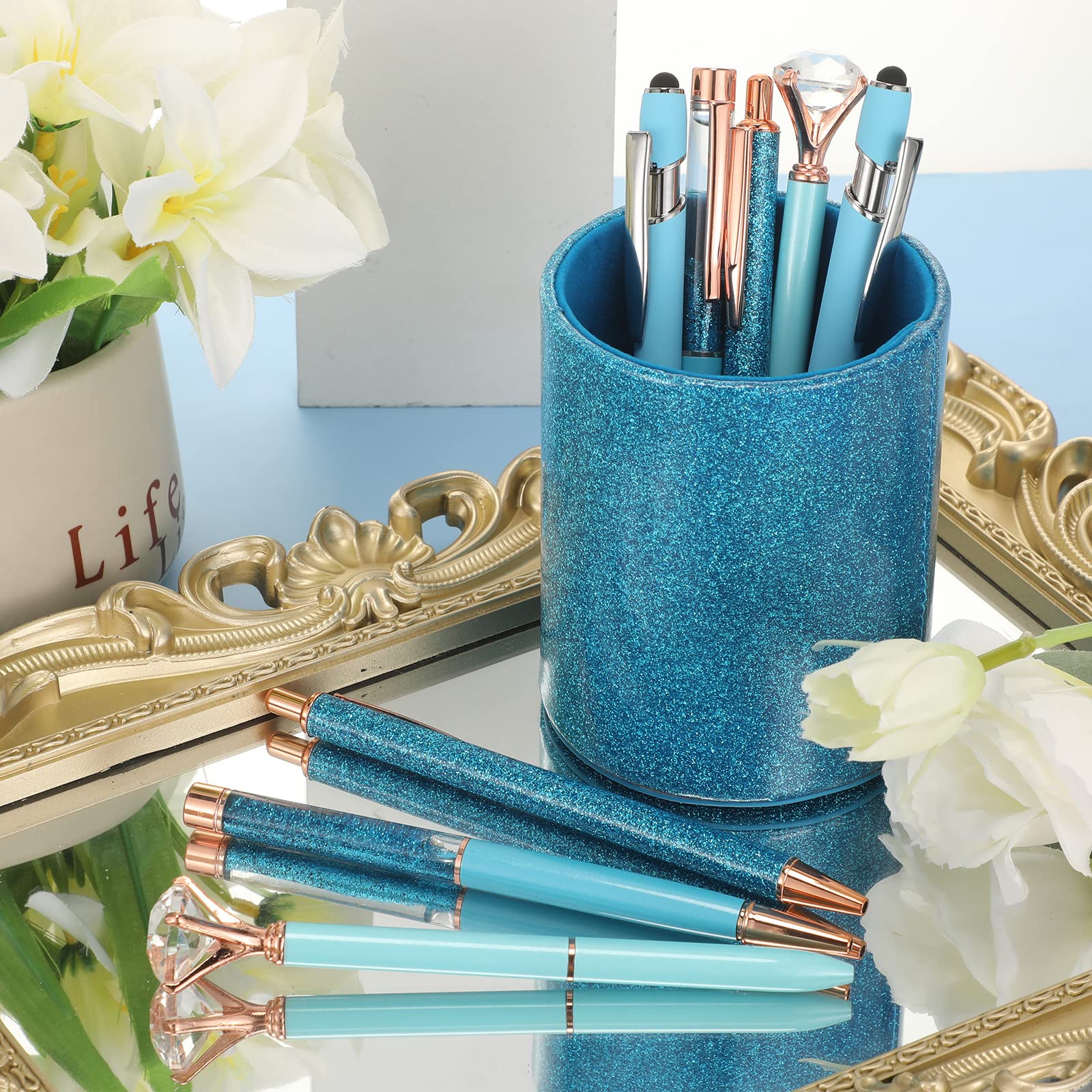 Broadly Applicable: the blue pencil holder can be utilized as a delicate decoration for your desk, office and home; It can be applied as a pen holder as well as a makeup brush holder to help you put away some small things; Bling blue pens are suitable for journaling, taking notes, signing, weddings, bridal shower and various parties, or writing down daily reminders and schedules