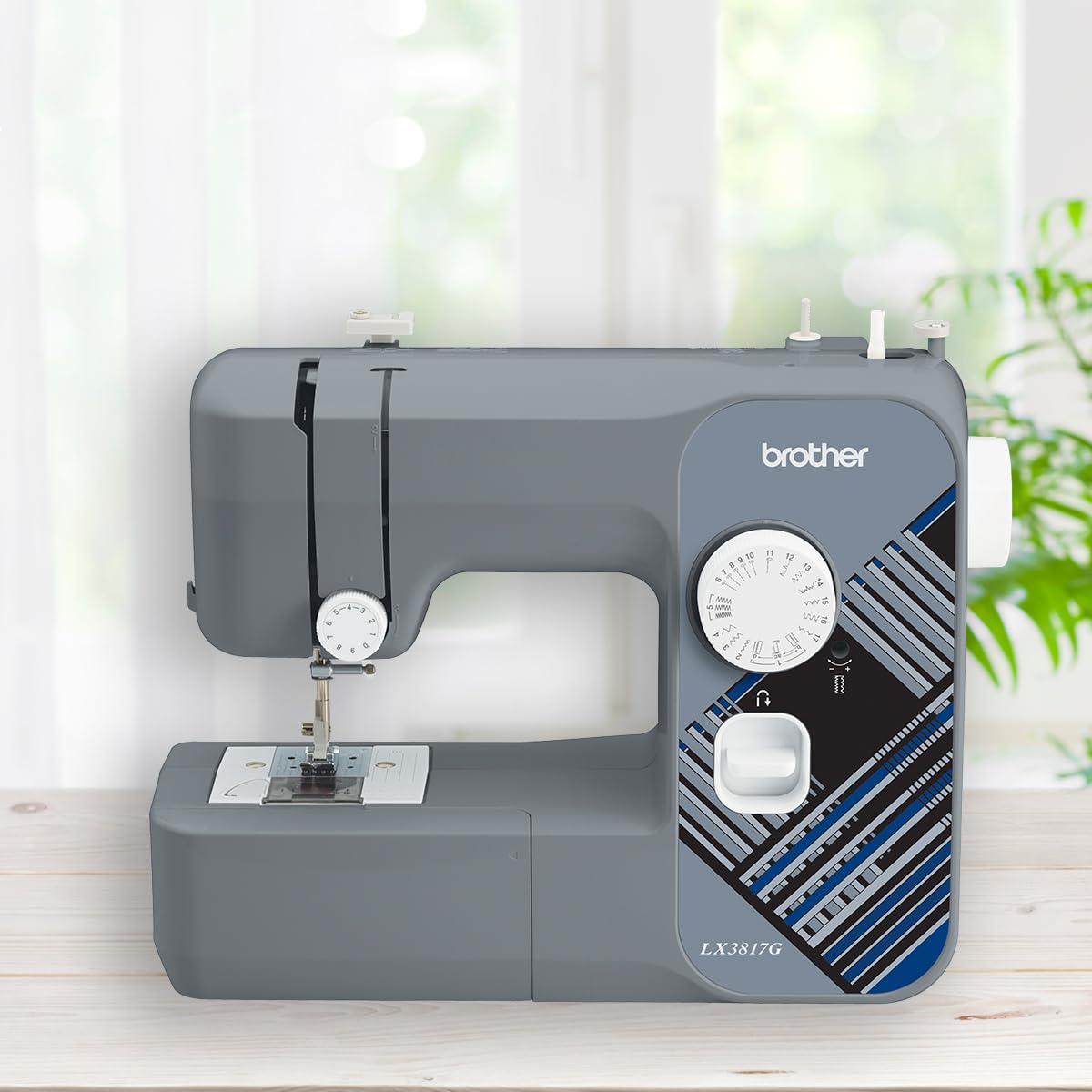 Refurbished. Start exploring the creative possibilities of sewing with this exceptionally easy to use, full size sewing machine. Select from 17 built-in sewing stitches, including a blind hem stitch, four-step auto-size buttonhole, zigzag and couching stitches. Selecting a stitch is as easy as turning the dial, and the included instructional CD takes you through how to set up and use your machine. Included are 4 quick-change sewing feet, with a zigzag, zipper, buttonhole and button sewing foot. The upper thread tension control dial allows you to adjust the thread tension to suit your fabric and project, so you can avoid too loose or too tight or puckered stitches. Lightweight, portable and compact, the LX3817G is great for taking to classes, and is easy to store at home with the included protective soft machine dust cover.