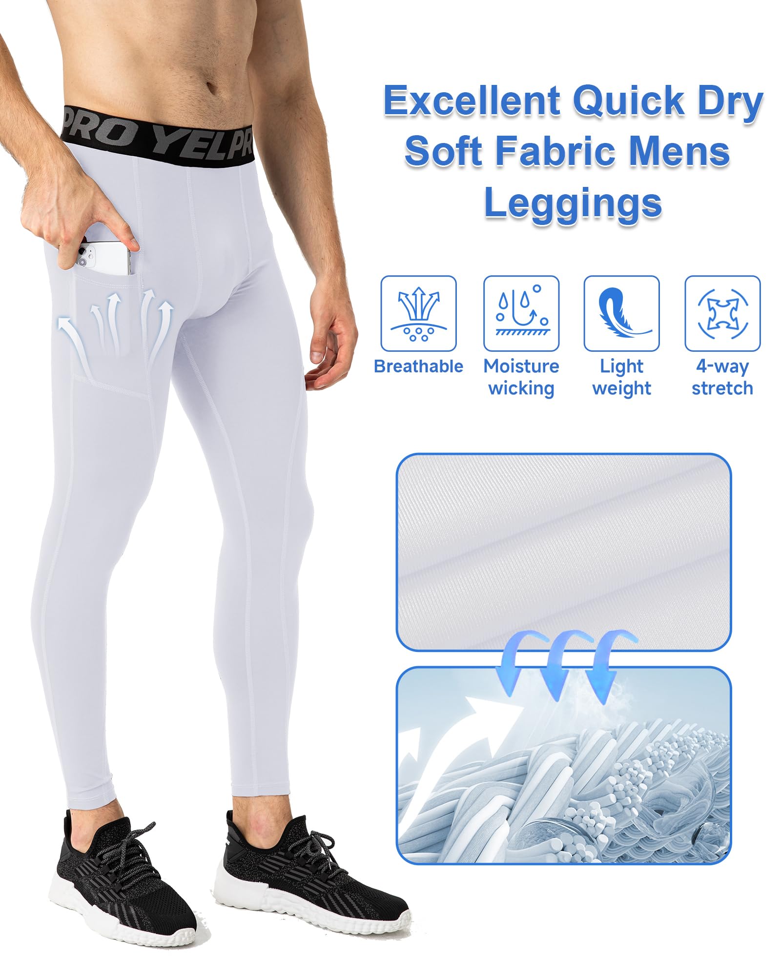 OUTSTANDING SPANDEX COMPRESSION PANTS: Our full-length men's compression leggings are soft and comfortable to the touch, made of high quality fabric with excellent moisture wicking and breathability. Stay cool in hot weather and warm in cold weather. Lightweight training pants, no movement restrictions