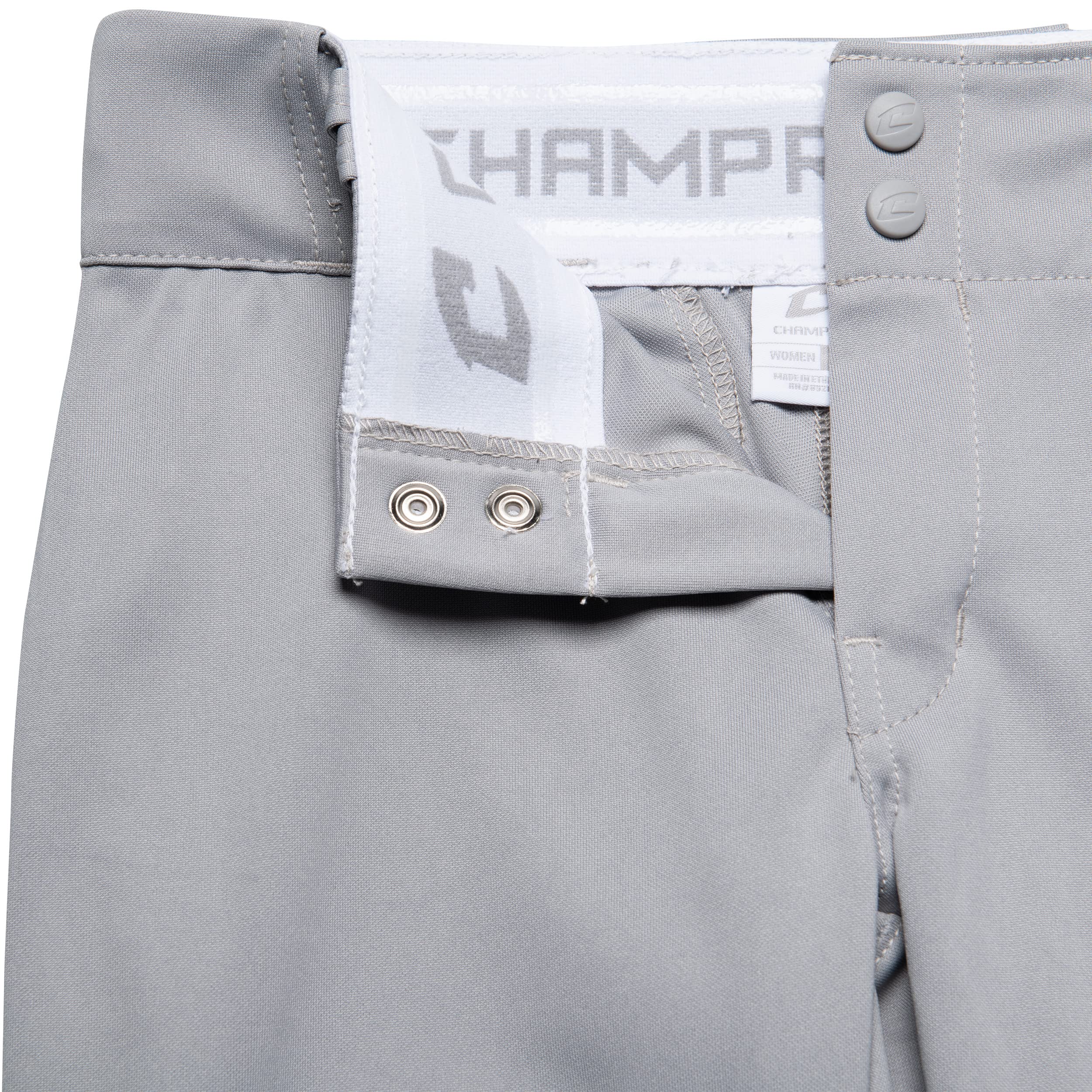 Description The CHAMPRO Tournament is a modern softball pant with legs slightly longer than traditional knickers. With elastic leg openings, these pants have a gentle but secure fit for a comfortable feel and easy movement throughout the game. Made of 100% highly abrasion-resistant TEK-KNIT polyester, the 14 oz. pro-weight fabric allows four-way stretch and adapts to the wearer’s movements. Knees reinforced with double-ply fabric create a more durable pant that withstands sliding action and lasts longer through the season. The 2.5” knit waistband includes Super-Grip Gel strips that keep jerseys tucked in. Slide a belt through the 7 pro-style tunnel belt loops to secure the uniform in place. Available in Women’s sizes S-2XL in 6 solid colors with 2 inset back pockets. Pair with CHAMPRO Stirrup Socks (available in 9 colors) for a traditional look.
