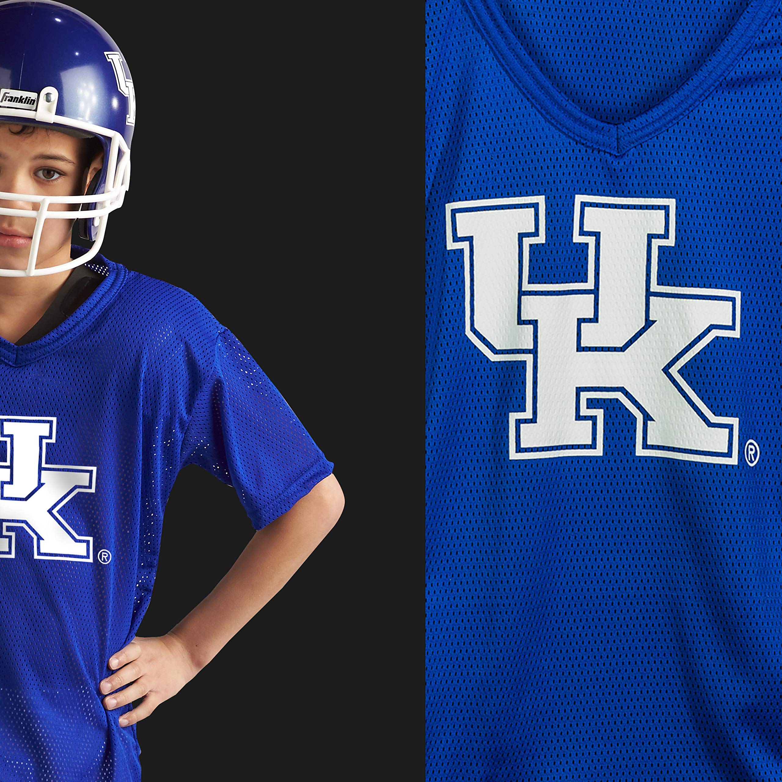Now your child can support their favorite player or even imagine themselves as part of their favorite team with this authentic Franklin Sports NCAA Deluxe Uniform set. Comes with jersey, pants, helmet and chinstrap along with iron-on numbers (#0-9). Important note: the helmet is for costume use only and should not be used in any actual game or sport capacity. This is the perfect gift for any child who loves football or is looking for a classic football Halloween costume to support their favorite team. Amaze and delight them with their very own NCAA team jersey on game day, for trick or treating, or as part of a Halloween costume party. Customize their jersey with iron-on numbers 0-9 and let their imagination take the field as they score the winning touchdown. With options for a variety of NCAA football teams from all the biggest conferences, there is a chance for every kid to be part of their favorite team. Find yours and let the cheering begin! Small size is recommended for ages 4-6. Waist measures 19-22”, chest measures 20-24”, and height measures 42-47”. The youth medium size is recommended for ages 7-9 with a waist measurement of 22-25”, chest size 25-29”, and a height of 48-54”. The youth large size is recommended for ages 10-12 with a waist size of 25-28”, a chest size of 30-34”, and a height of 54-60”.