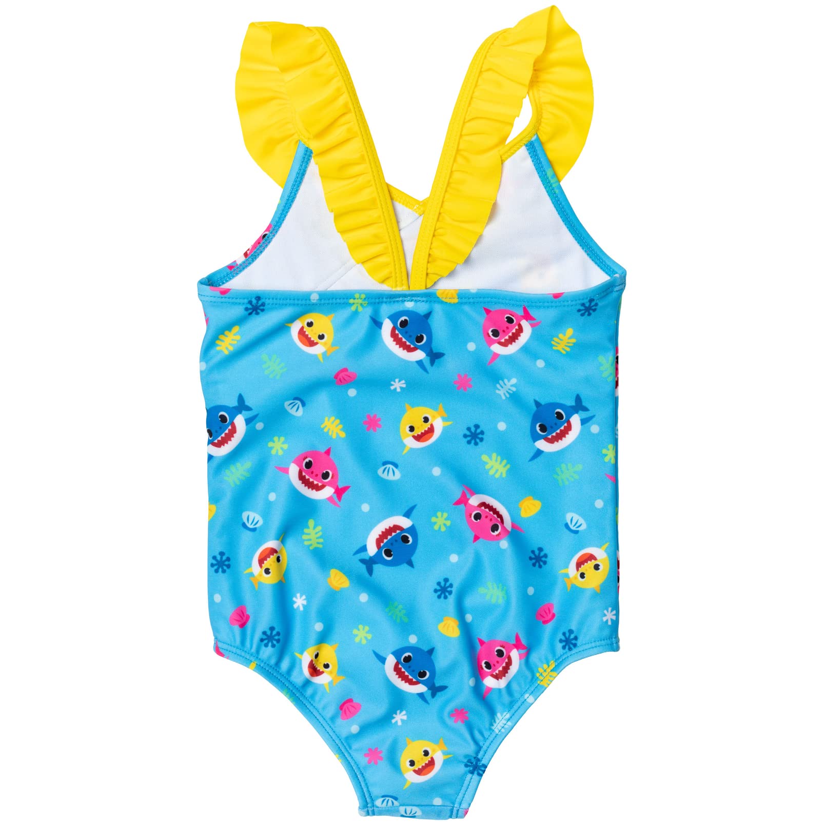 Officially licensed Baby Shark toddler girls cute and stylish one piece swimming suit with ruffles