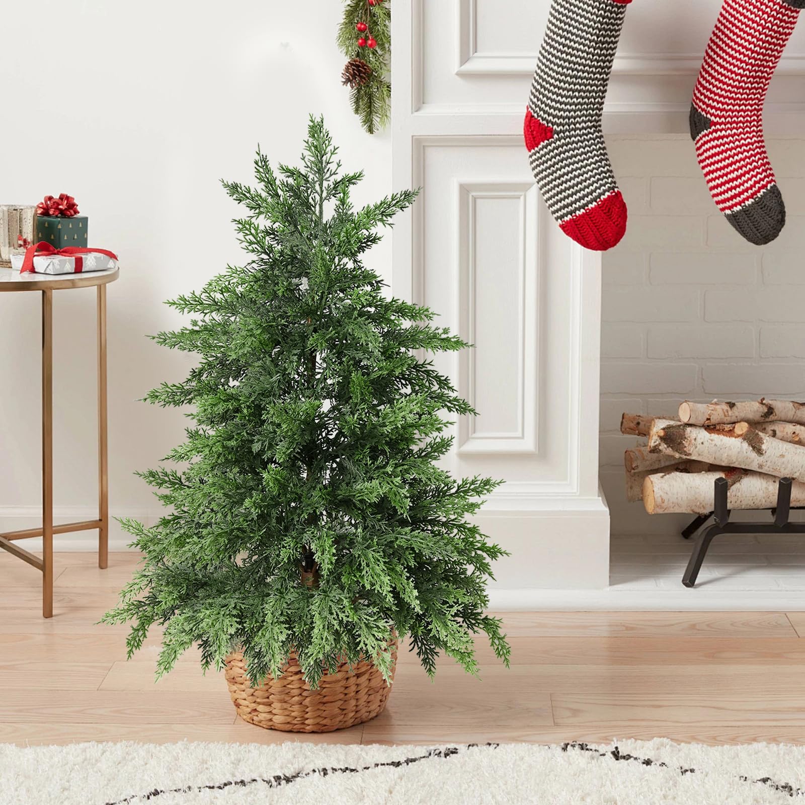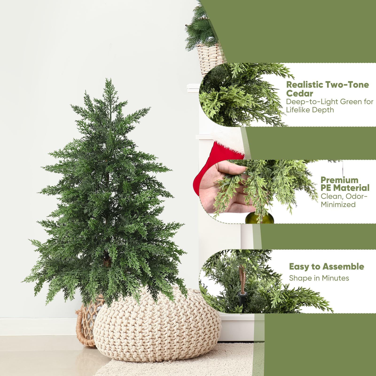 【Highly Realistic with Christmas Ambiance】Crafted with fork cypress leaf design, our artificial tree mimics the natural texture and irregular shape of real cedar while exuding a stronger festive Christmas vibe. The lush green color and lifelike branches create an enchanting holiday atmosphere.