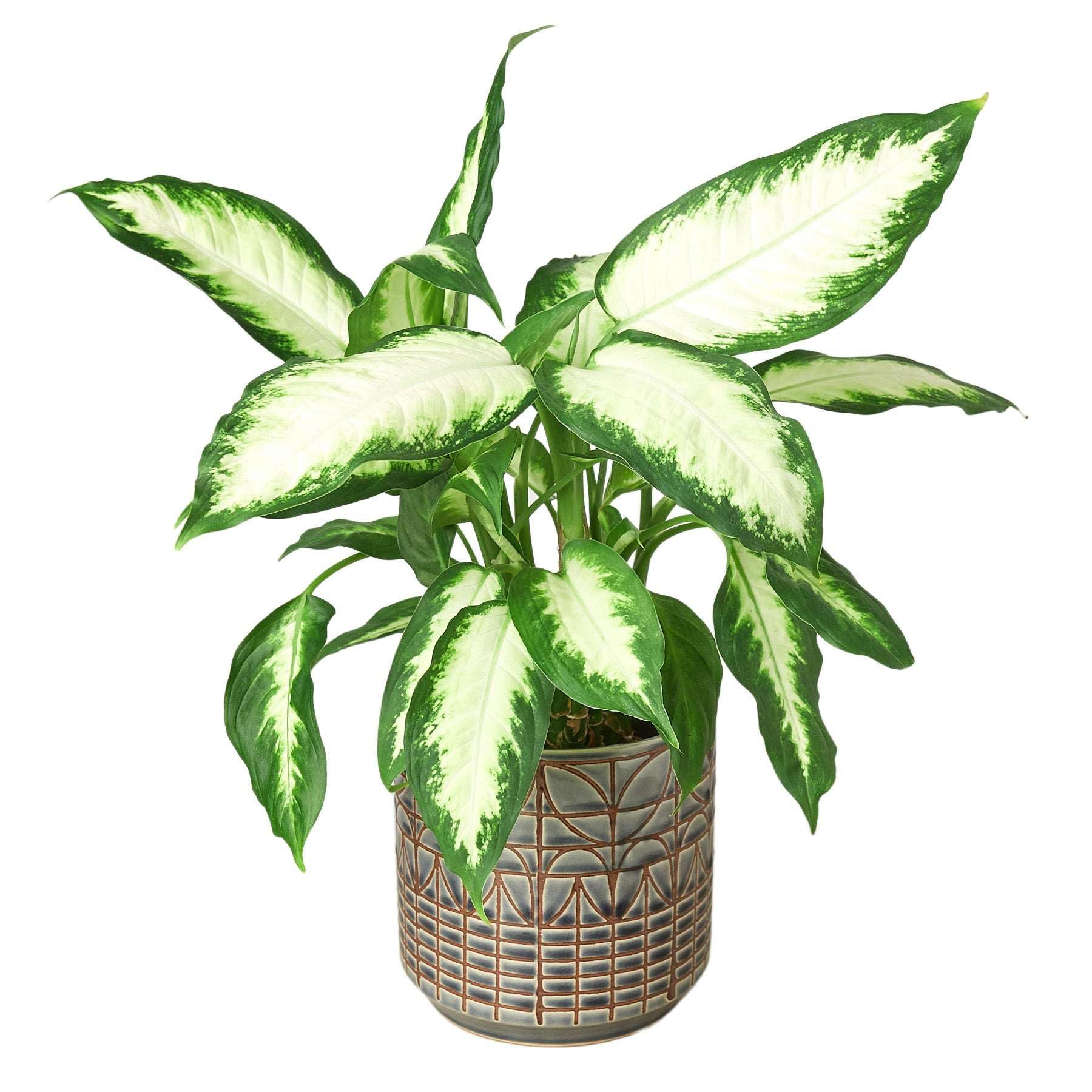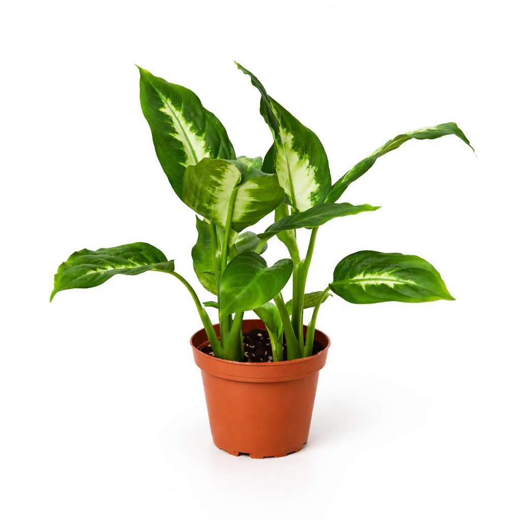 MEET DIEFFENBACHIA CAMILLE! This plant has large leaves that are a creamy yellowish-white with dark green around the border and thrives in a large range of environments.